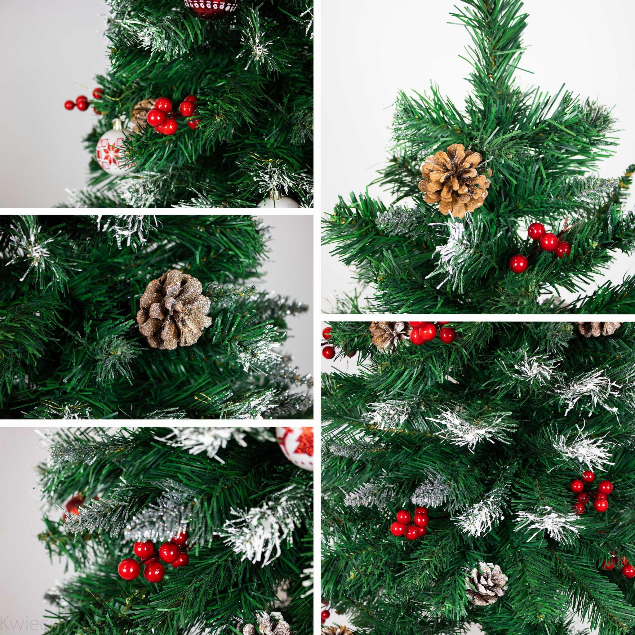 - Delikatne, ale zarazem stabilne gałęzie bogate w ośnieżone igliwia pozwolą wyeksponować Twoje ozdoby świąteczne jeśli będziesz ich potrzebować - razem z drzewkiem dostajesz zestaw szyszek i czerwonej jarzębiny.