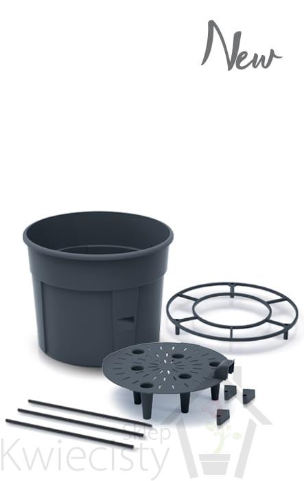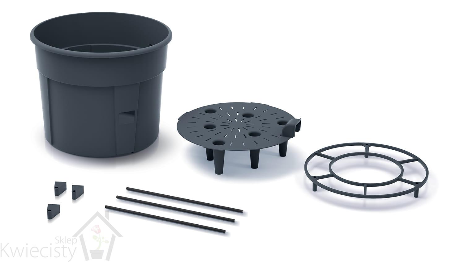 - doniczkę wykonaną z wysokiej jakości tworzywa sztucznego z otworem umożliwiającym bezpośrednie podlewanie bryły korzennej,