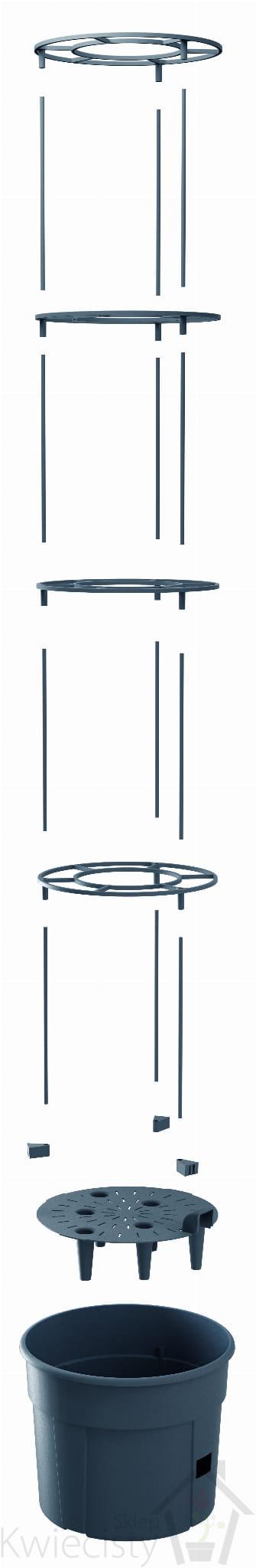 Stelaż wyposażony został w pierścienie, które otaczając roślinę, stabilizują plon.