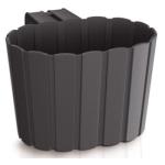 Owalne doniczki o rustykalnym designie z uchwytami do wieszania na poręczach. Wysokiej jakości tworzywo sztuczne. Wymiary: 19,4x21,2x13 cm. Pojemność: 2,2l. Wybór kolorów.