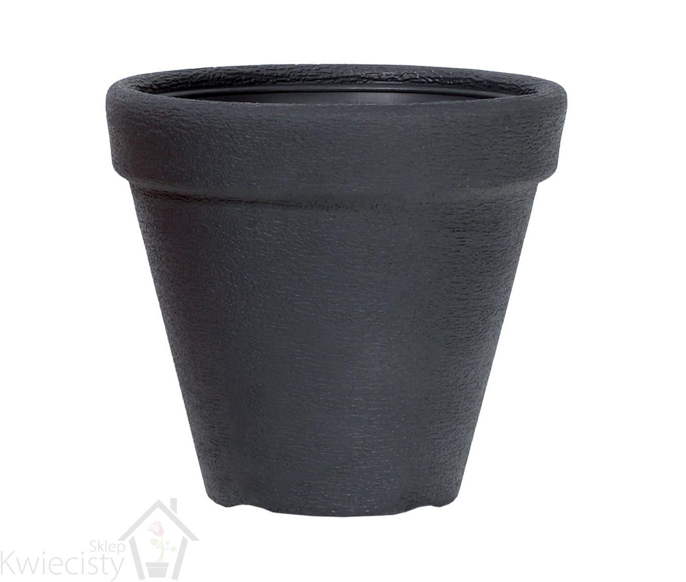 Okrągła doniczka klasyczna. Gładka, bez wzorów wykonana z trwałego tworzywa sztucznego. Wymiary: 40x34cm. Pojemność 23l. Wybór kolorów.