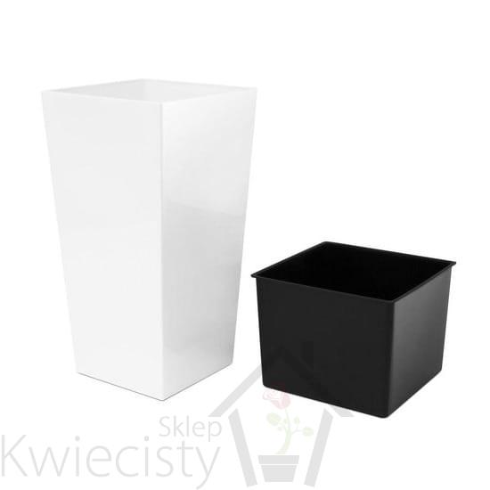 Kwadratowa wysoka doniczka z wkładem w komplecie, doniczka idealna do salonu lub tarasu. Doniczka wysoka na 42 cm