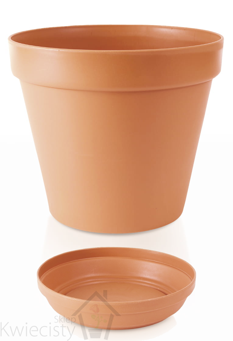 Doniczka z podstawką Glinka to udana imitacja tradycyjnych doniczek glinianych, ale w przeciwieństwie do nich tak łatwo się nie stłucze.