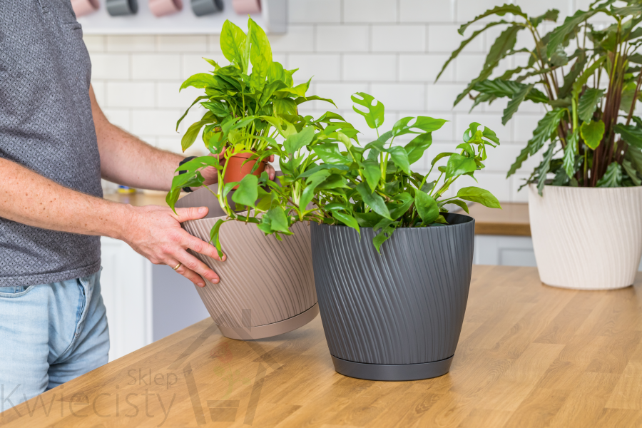 - Zintegrowana podstawka do doniczki mocowana jest na zatrzaski