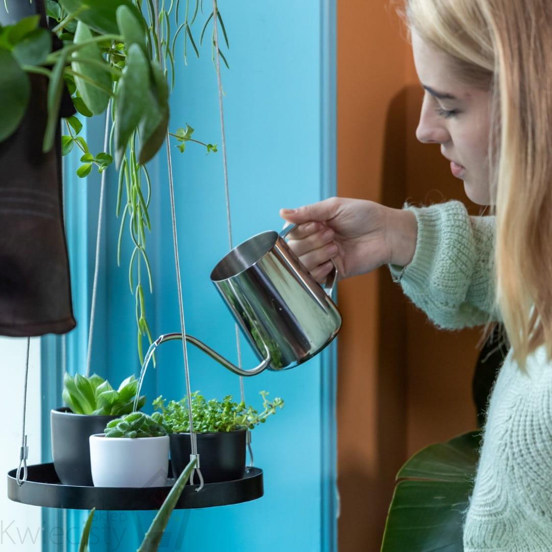 Konewka wykonana ze stali nierdzewnej. Idealna do podlewania roślin w domu, w ogrodzie i na tarasie.