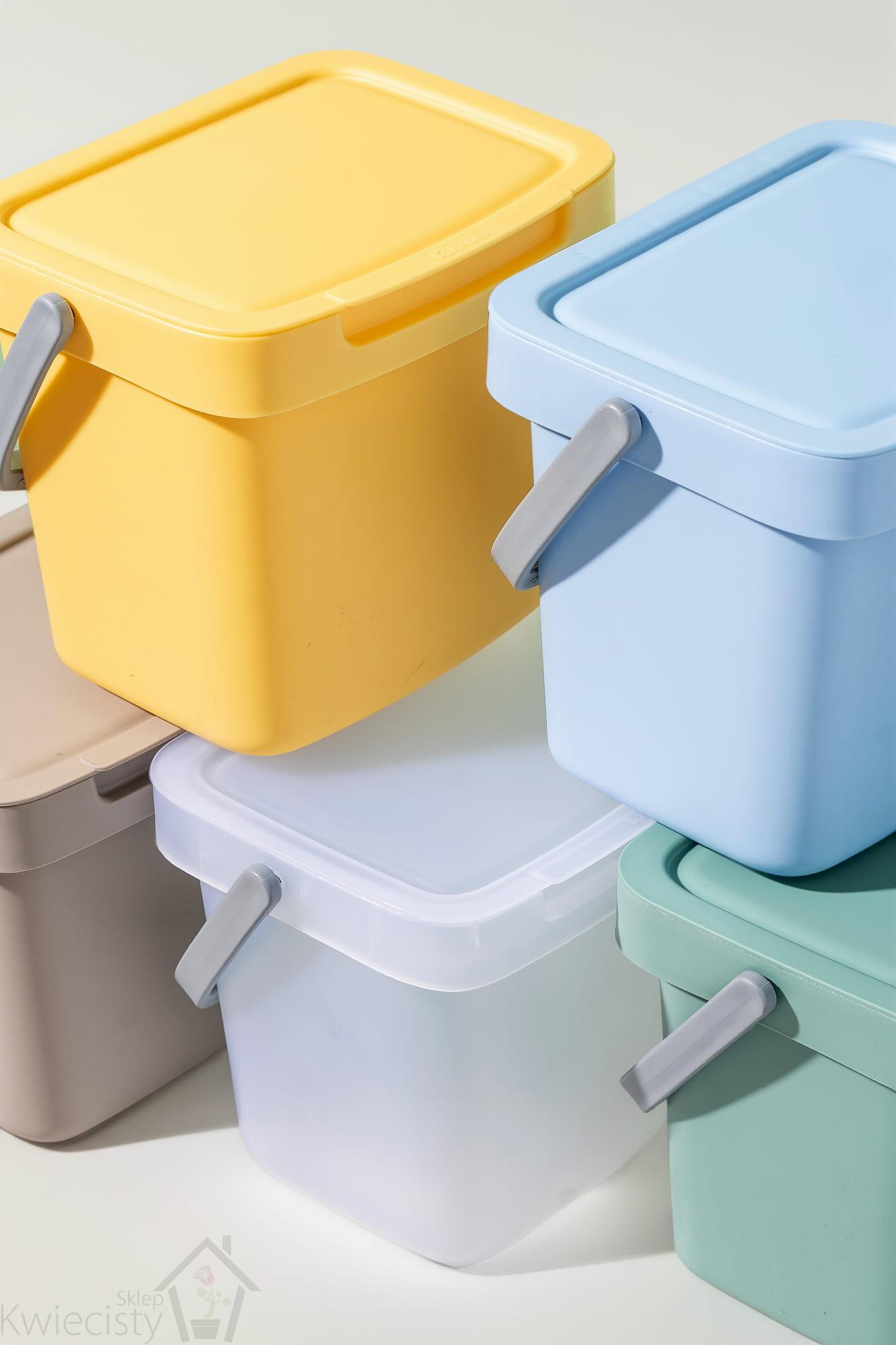 Ponadto, każdy z kolorowych pojemników w zestawie umożliwia wygodne sortowanie różnych rodzajów odpadów:
