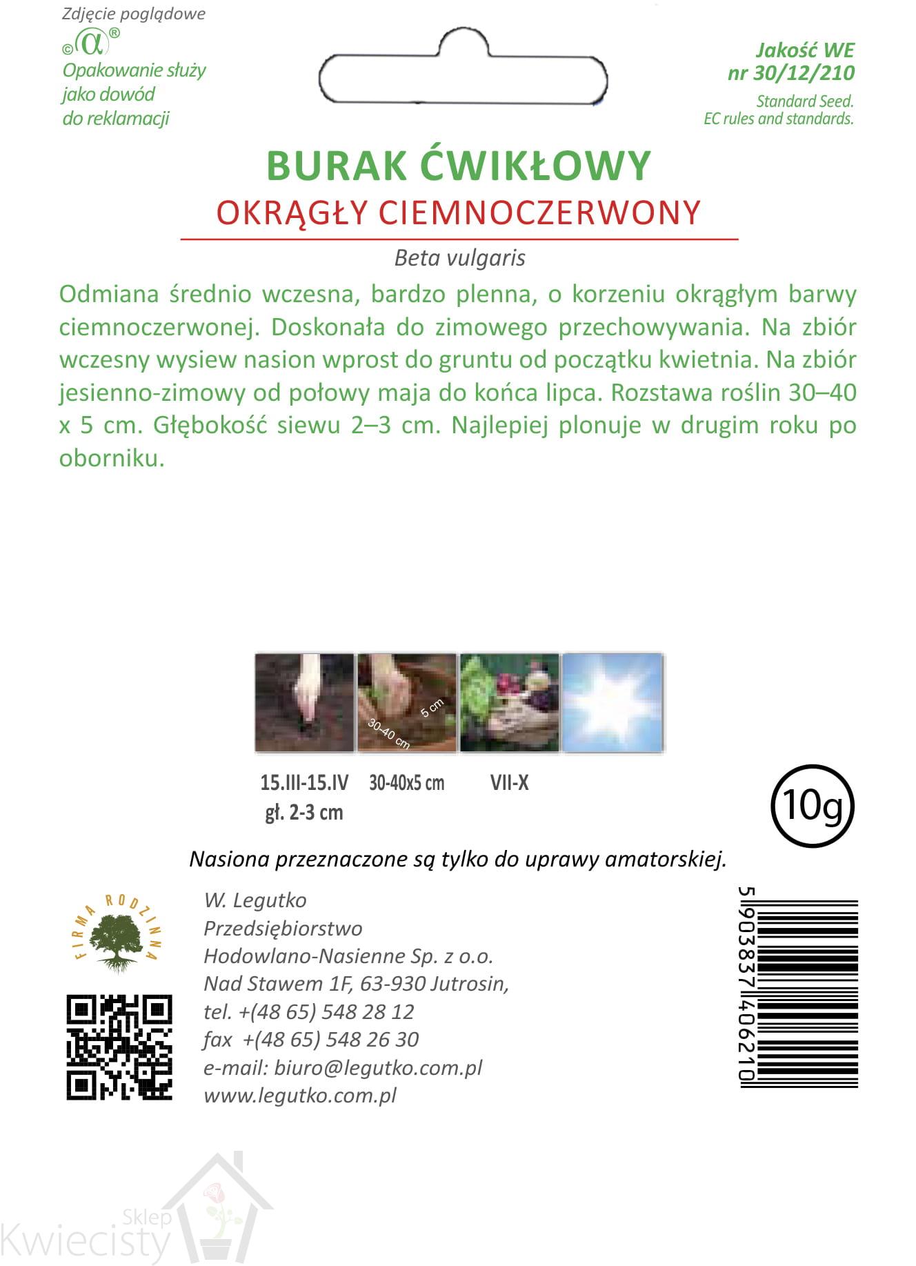 Nasiona Burak ćwikłowy Okrągły Ciemnoczerwony, 20g
