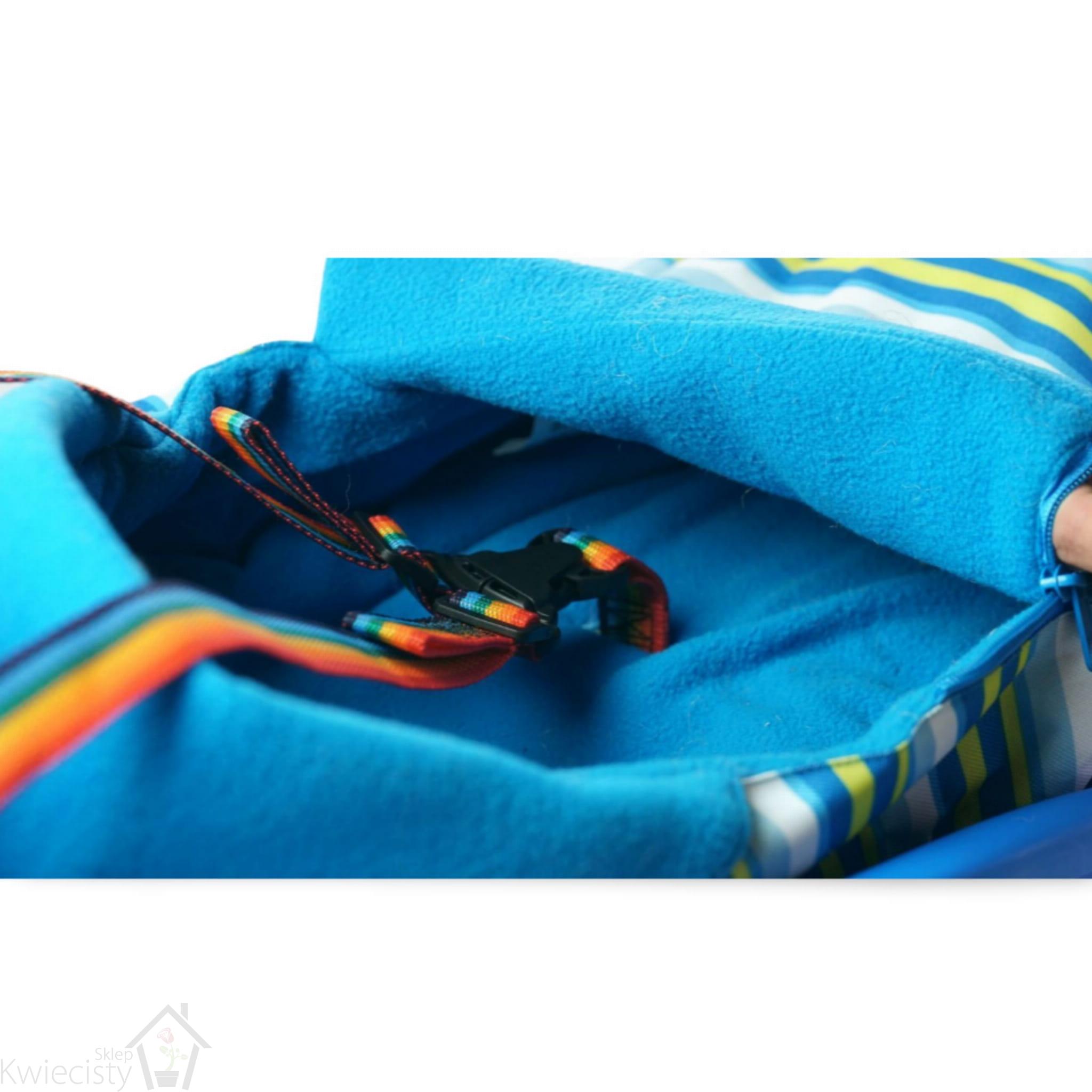 Wystarczy przewlec pasy bezpieczeństwa przez otwór w śpiworku