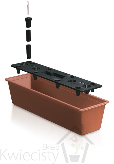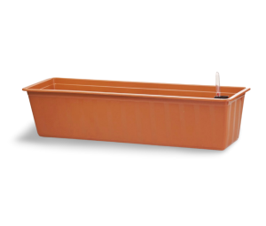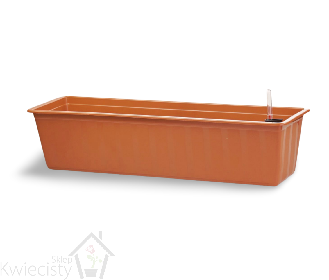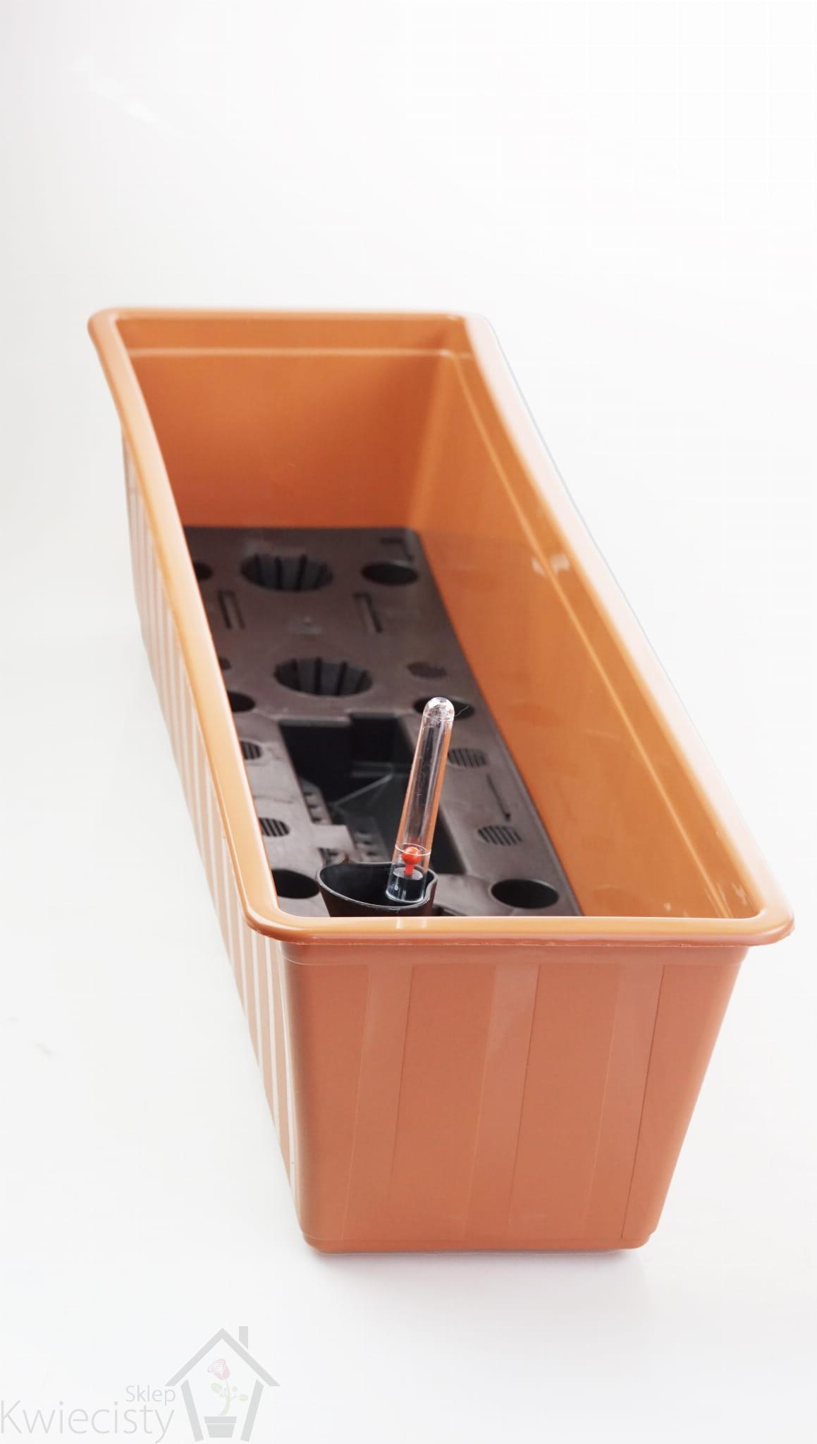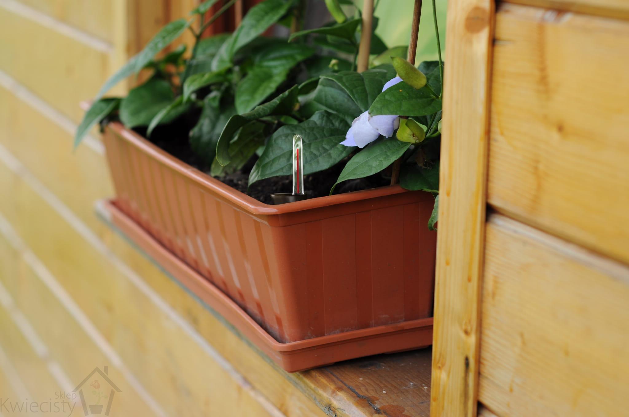 Skrzynka balkonowa z nawadnianiem - klasyczna podłużna w kolorze ceglastym terakota