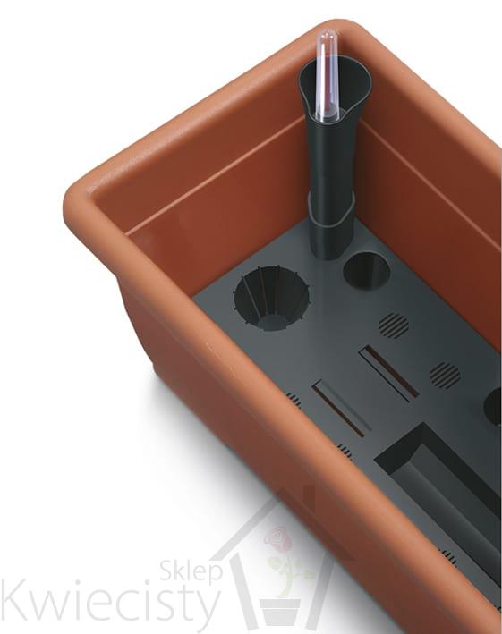 System nawadniania magazynuje wodę na dnie doniczki. Woda stopniowo paruję, a korzenie nie gniją