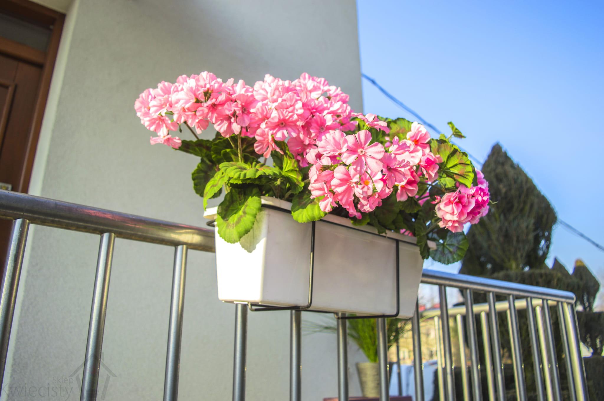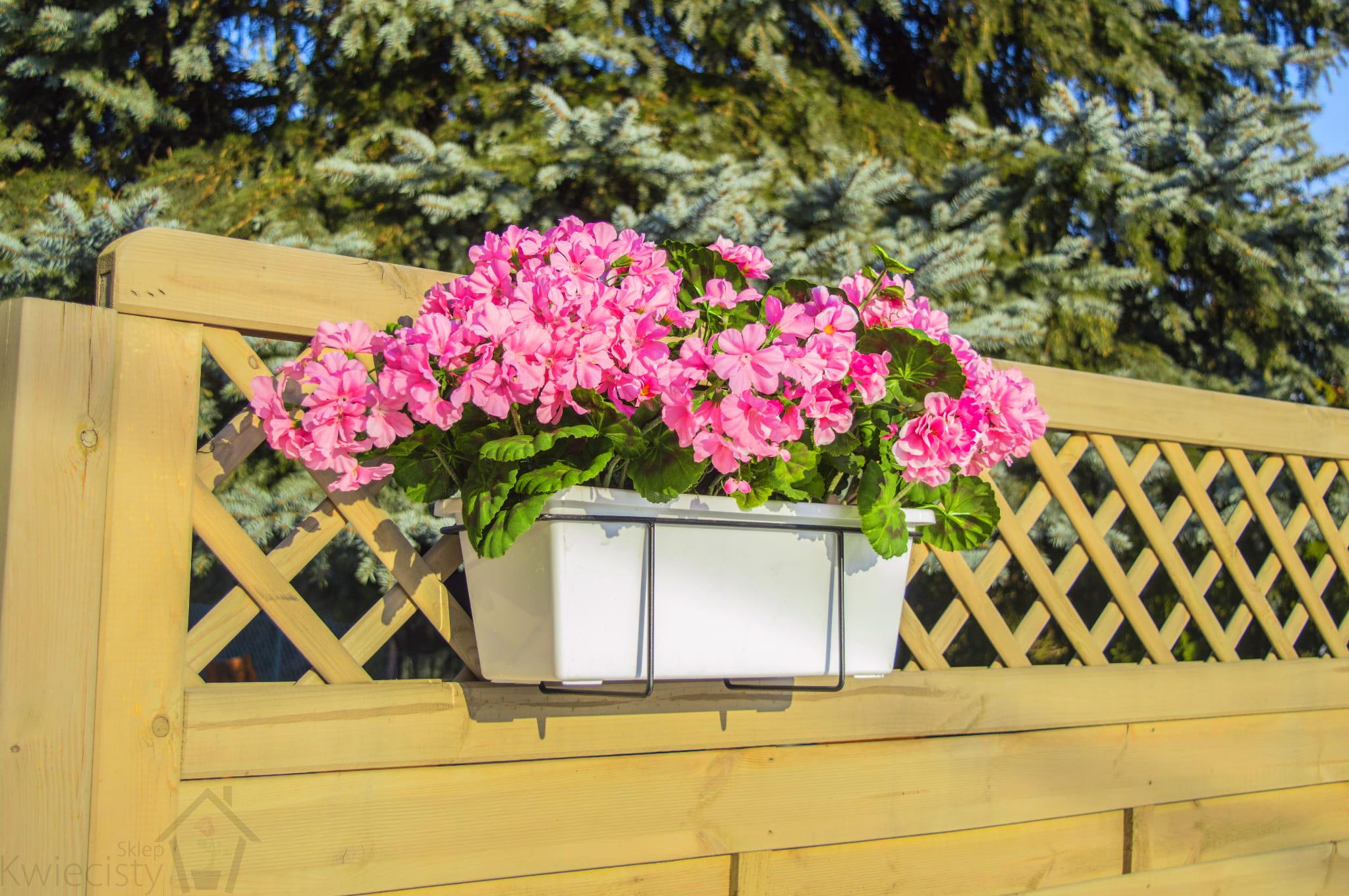 Metalowy uchwyt na doniczkę balkonową o długości 59 cm. Zobacz więcej