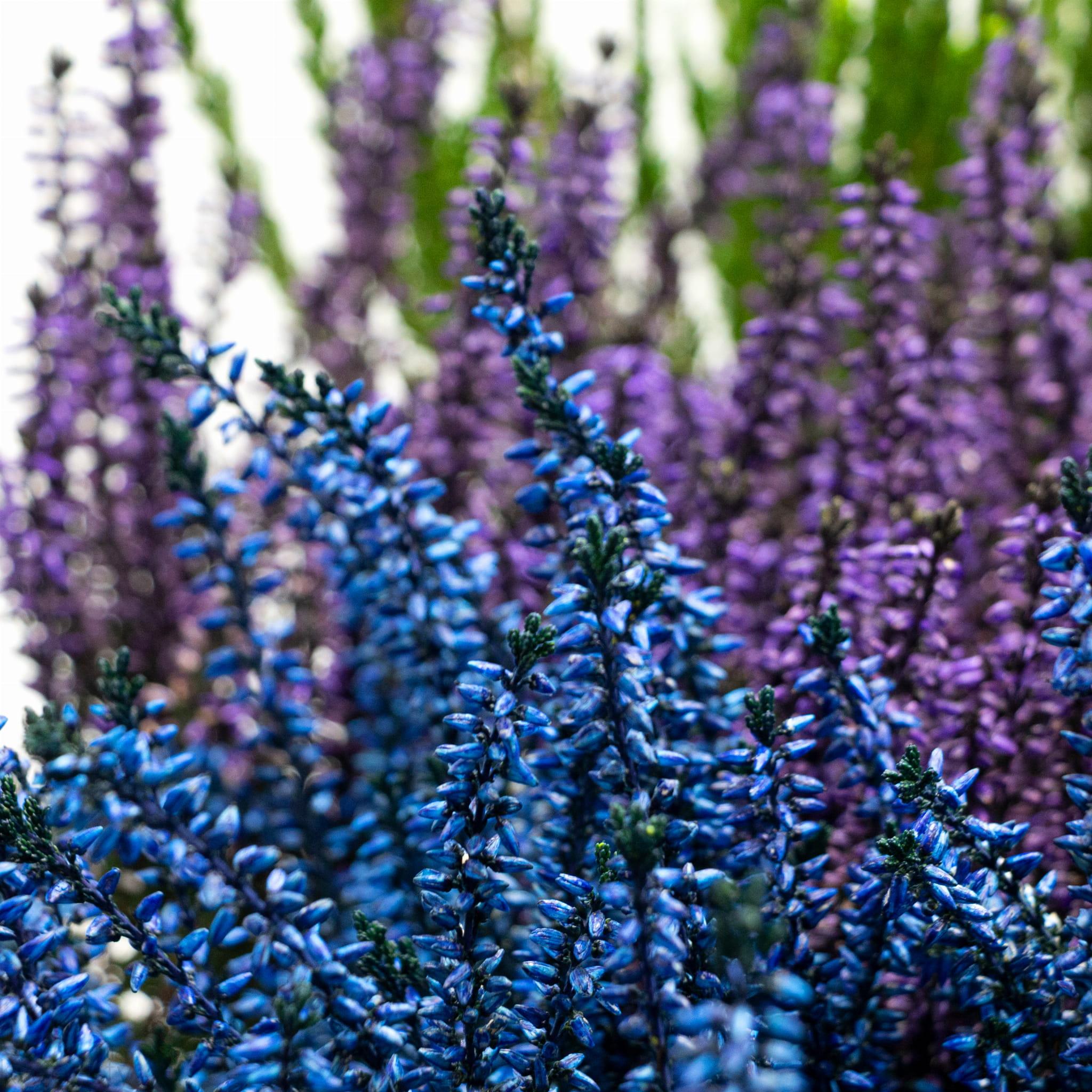Kwitnie bardzo obficie i długo, ponieważ kwiatostan jest polakierowany na kolor metalicznie niebieski i fioletowy, co daje niepowtarzalne walory tej rośliny. Kwiaty utrzymują się przez całą jesień i zimę ! Jest to żywa roślina więc należy ją oczywiście podlewać. Wiosną przycina się wrzos poniżej kwiatostanu a w kolejnym roku naturalnie zakwitnie na biało Jeżeli ma zostać przesadzony to należy pamiętać że wymaga gleb kwaśnych i przepuszczalnych. Dobrze prezentuje się w ozdobnych pojemnikach, w kompozycjach z karłowymi iglakami i późnymi wrzosami, dekorując balkony i tarasy przez całą jesień i zimę