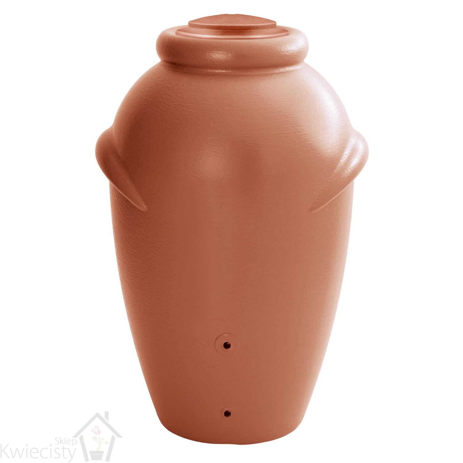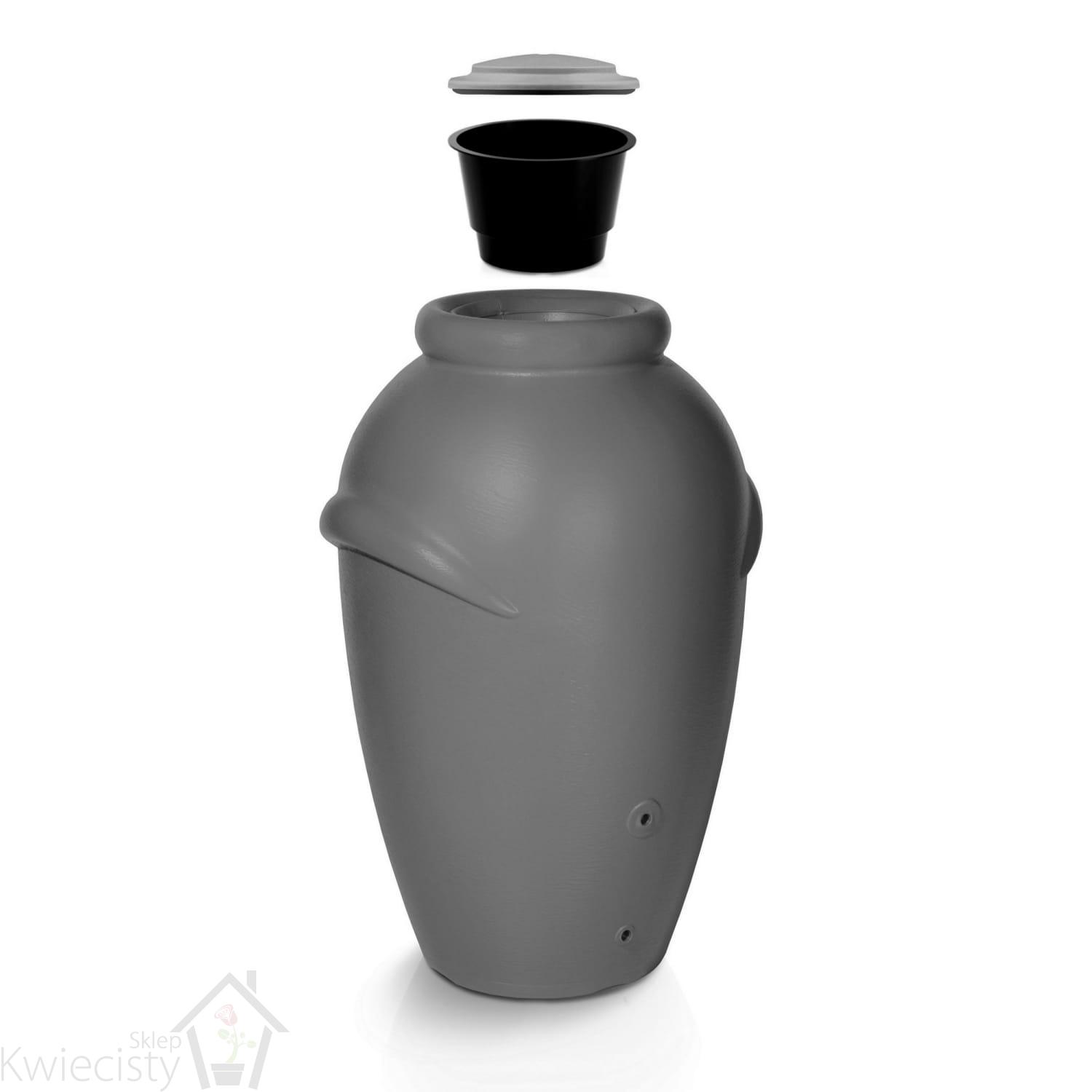 Zbiornik na wodę deszczową o pojemności 360l w kształcie mitycznej amfory. Wymiary: 80x72x120 cm. Wykonane z mrozoodpornego polietylenu.
