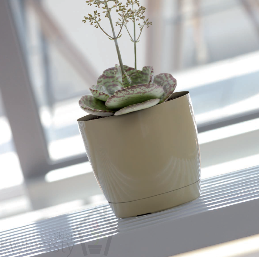 Doniczka wyposażona w podstawkę.