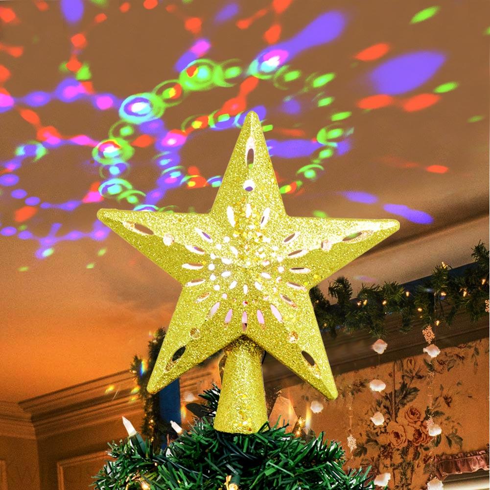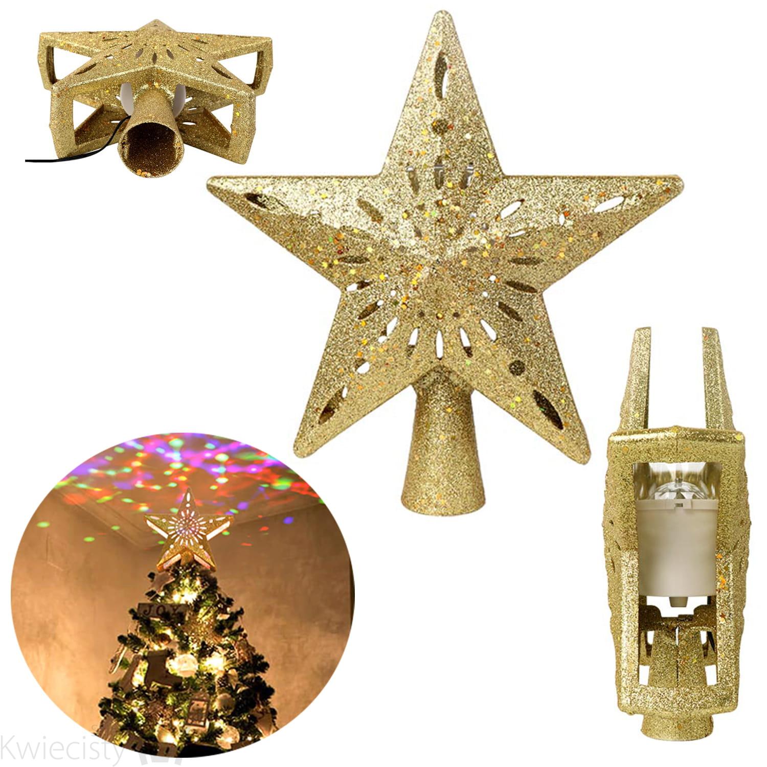 Spraw, aby Twój dom wypełnił się niepowtarzalnym blaskiem i świątecznym klimatem! Złota, brokatowa gwiazda przepięknie będzie się prezentować na choince w dzień, natomiast nocą umieszczony w niej projektor rozświetli Twoje wnętrze cudownym, wielobarwnym, ruchomym światłem!