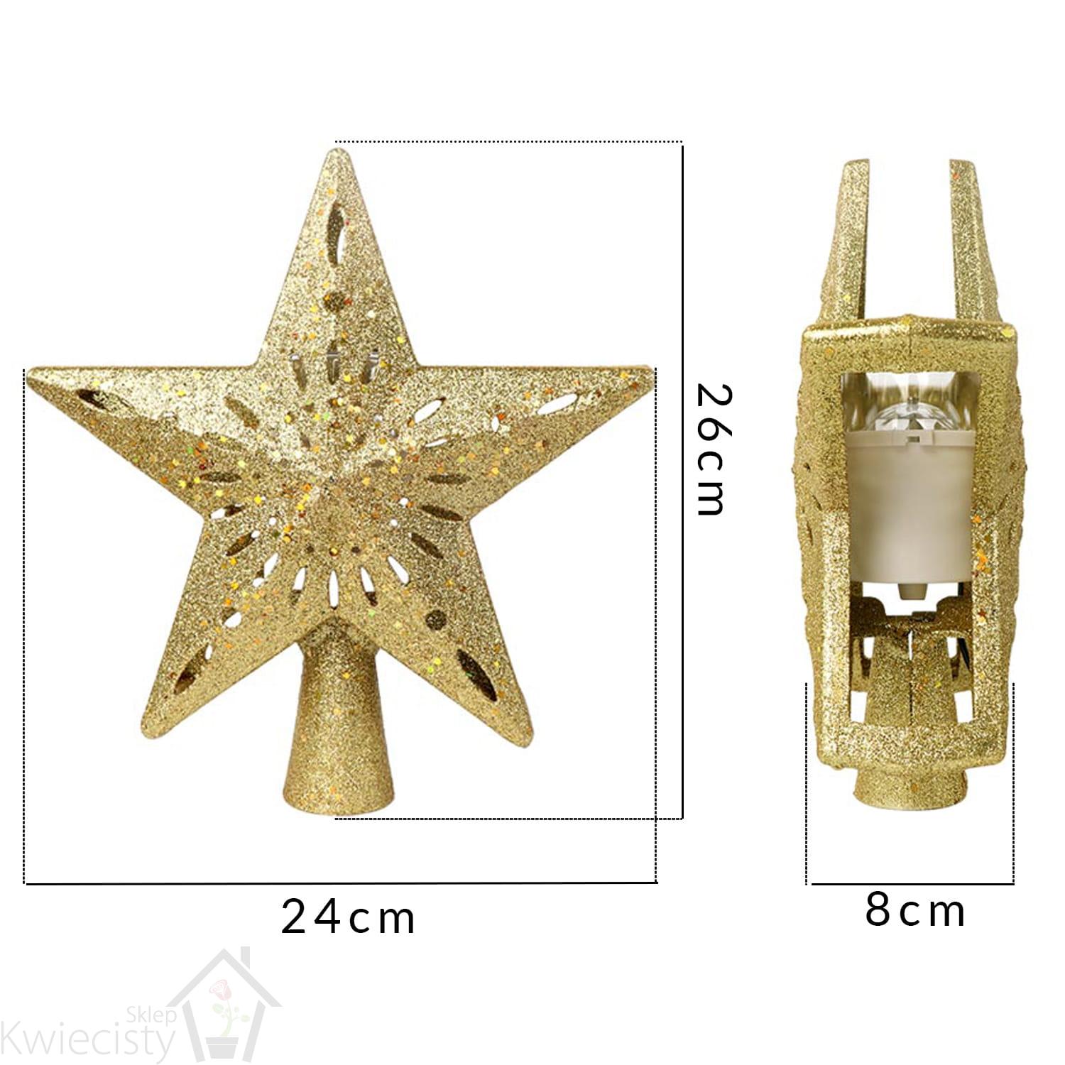 Złota, brokatowa gwiazda na choinkę przepięknie będzie się prezentować na choince w dzień, natomiast nocą umieszczony w niej projektor rozświetli Twoje wnętrze cudownym, wielobarwnym, ruchomym światłem!