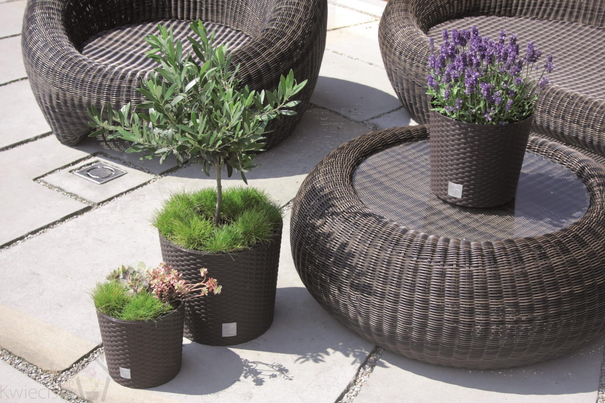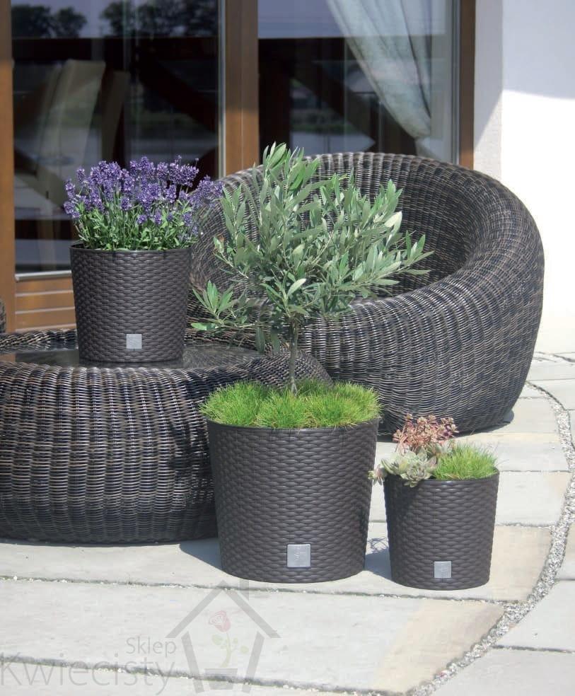 Wysokie, smukłe doniczki o bardzo nowoczesnym designie i fakturze wiernie imitującej plecionkę z naturalnego rattanu, pozwala kreować piękne unikatowe wnętrza oraz bez ograniczeń aranżować przestrzeń wokół domu. Wykonane z wysokiej jakości tworzywa sztucznego, odpornego na warunki atmosferyczne oraz promienie UV.