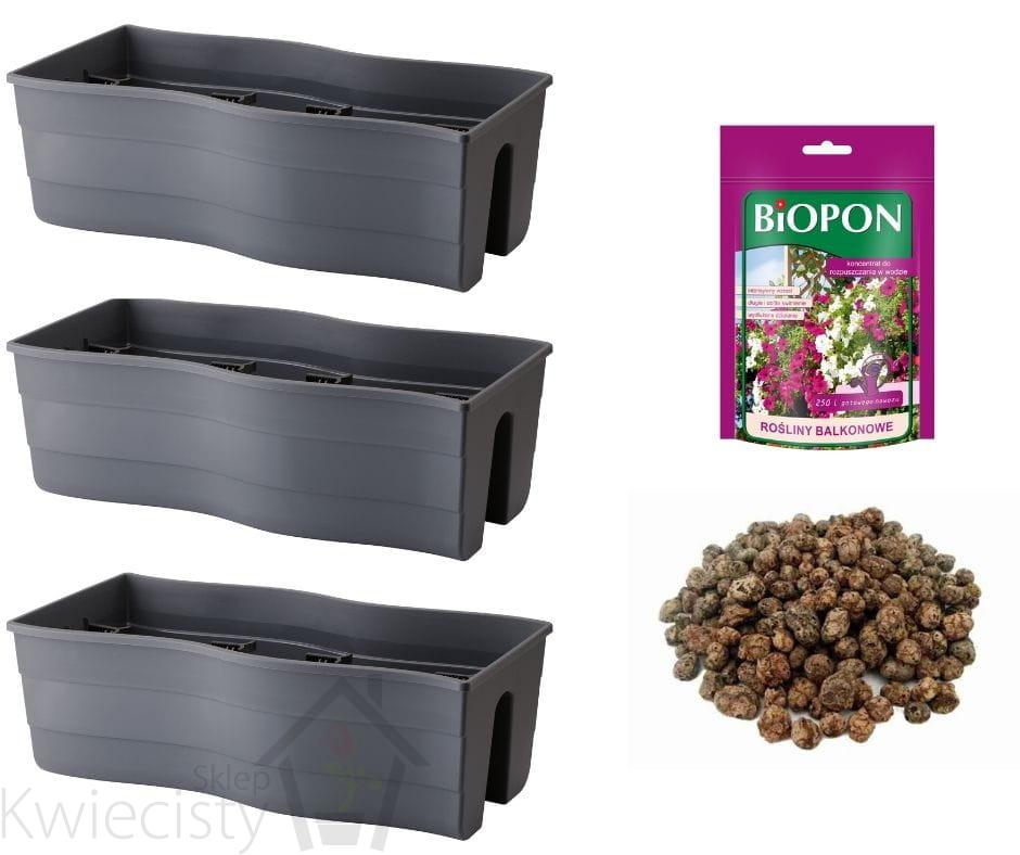 Doniczka na balustradę Wave 60 komplet 3 szt. z keramzytem i odżywką
