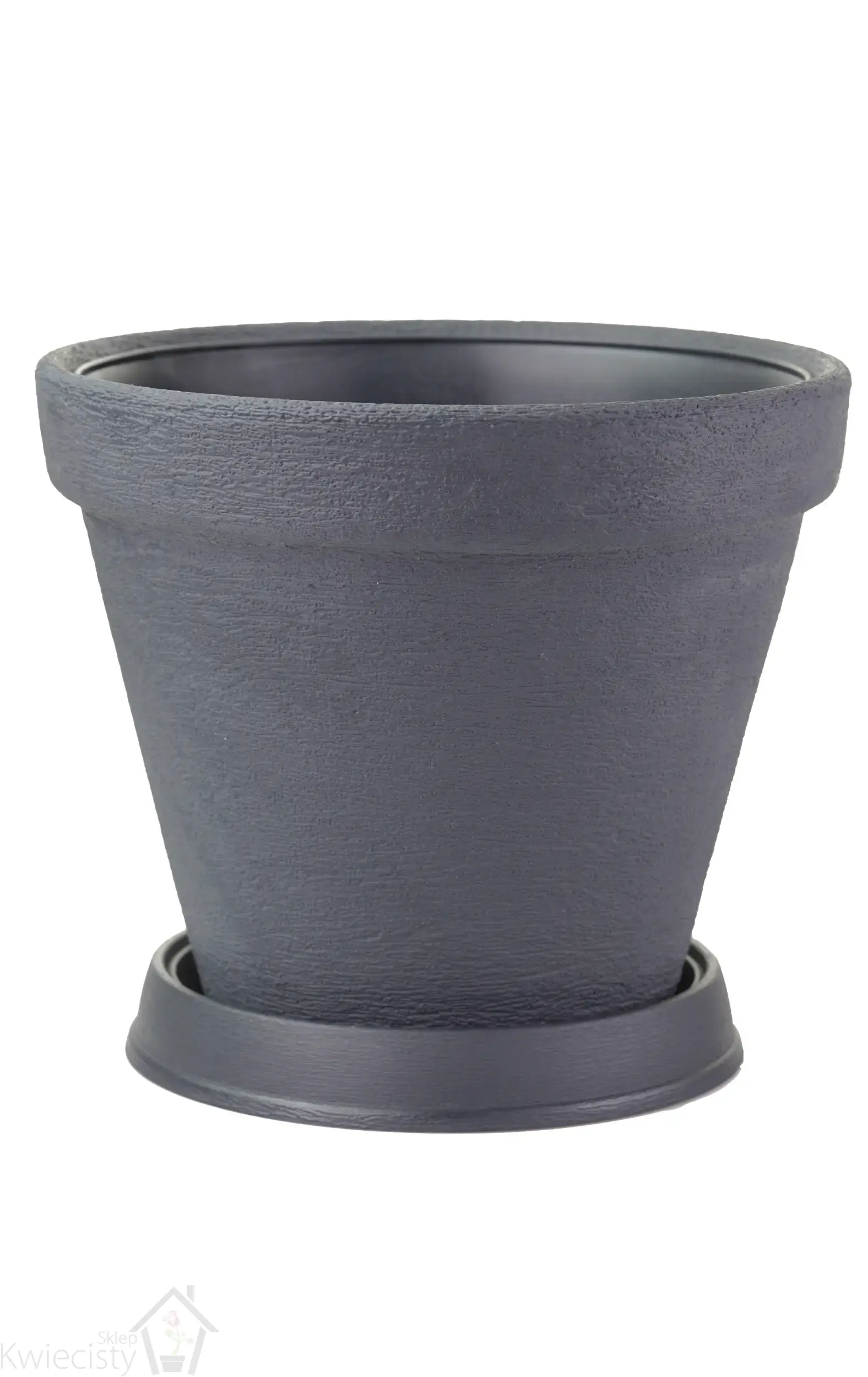 Okrągła doniczka klasyczna w komplecie z podstawką. Gładka, bez wzorów wykonana z trwałego tworzywa sztucznego. Wymiary: 45x39 cm. Pojemność 36l. Wybór kolorów.