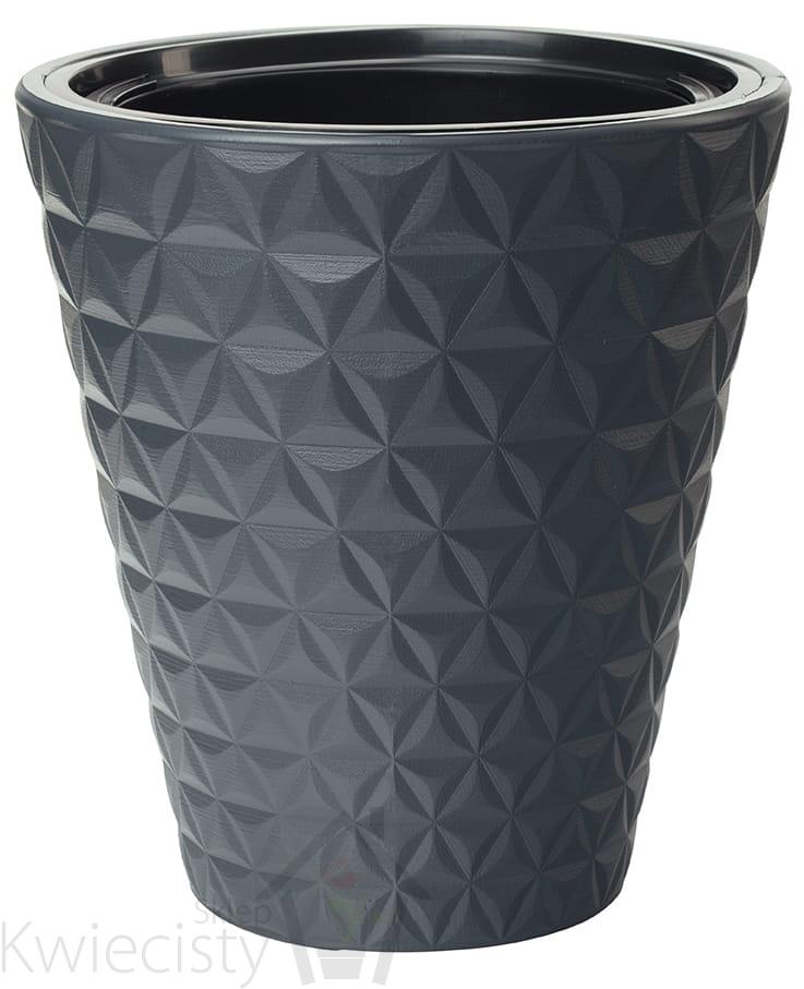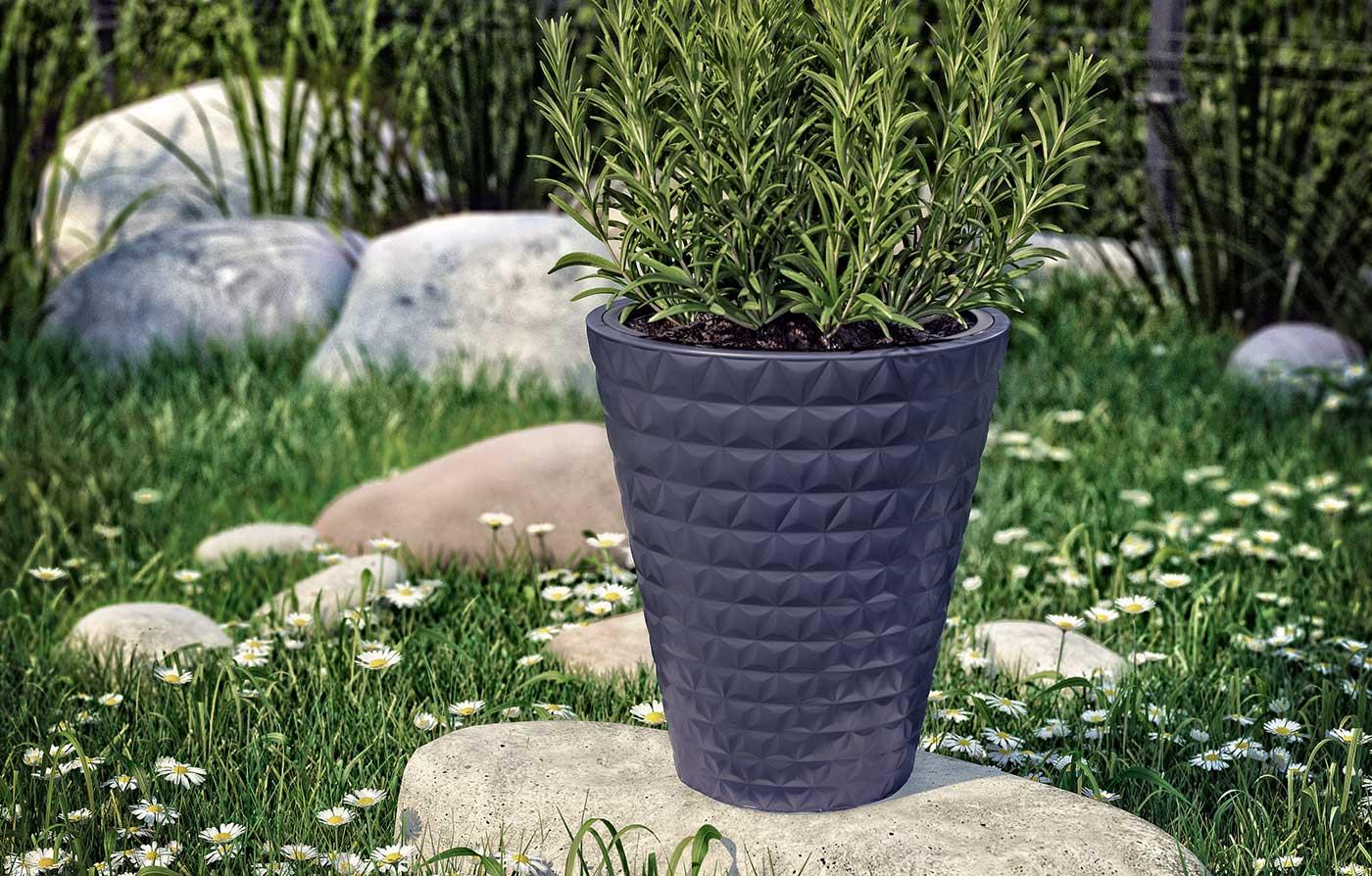 Donica wykonana z mrozoodpornego tworzywa sztucznego. O wysokiej jakości materiału świadczą jego właściwości: odporność na warunki atmosferyczne i promieniowaniem UV, co gwarantuje trwałość koloru. Produkt z przeznaczeniem do wewnątrz oraz na zewnątrz budynków. Mrozoodporne donice o ciekawej powierzchni z efektem przypominającym diament.