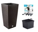 Wysokiej jakości doniczki z tworzywa sztucznego o rattanowym wyglądzie z wkładem wewnętrznym i systemem do nawadniania.