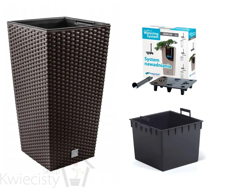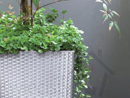 Wysoka doniczka Rato Square o fakturze wiernie imitującej plecionkę z naturalnego rattanu, pozwala kreować piękne, unikatowe wnętrza i bez ograniczeń aranżować przestrzeń wokół domu. W zestawie z nawadnianiem