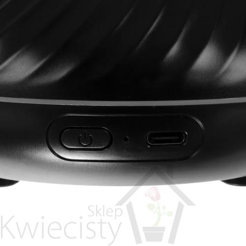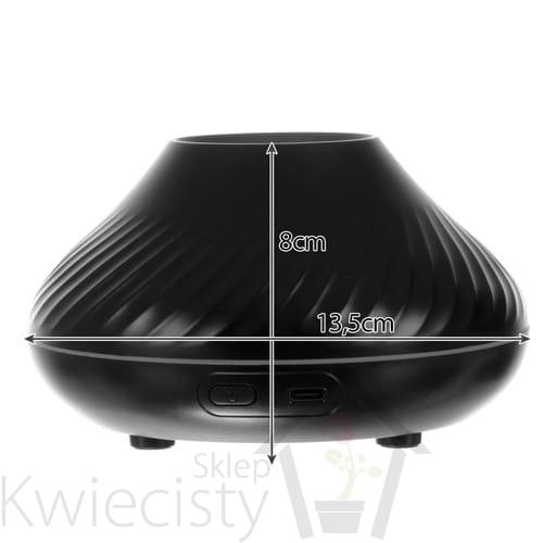 - Specyfikacja – 3w1: lampka + nawilżacz + aromaterapia; oświetlenie RGB LED: 7 kolorów; kolor: czarny; materiał: tworzywo sztuczne; nawilżanie: tak; aromaterapia: tak; bezgłośny: tak; pojemność: 130 ml; moc: 6,5 W; długość przewodu zasilającego: 100 cm; wymiary: 13,5 x 8 cm; waga: 0,178 kg; waga w opakowaniu: 0,312 kg.