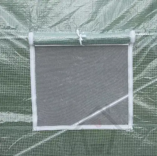 - Zamek Błyskawiczny i Okna z Moskitierą - Zamek błyskawiczny umożliwia szybki dostęp do wnętrza tunelu. Po rozsunięciu, drzwi można łatwo zapiąć na górze, co ułatwia wentylację. Okna z moskitierą zapewniają właściwy przepływ powietrza, co pozwala regulować temperaturę i wilgotność w tunelu.