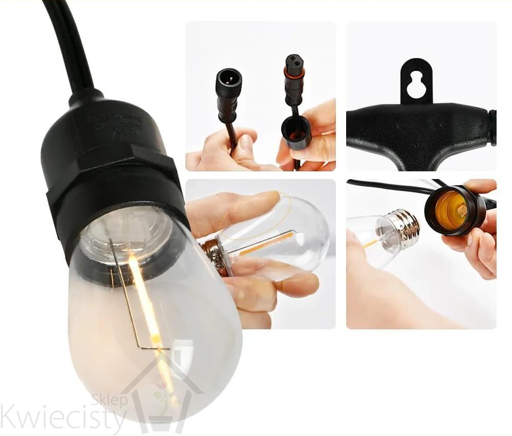 Zaletą naszych girland świetlnych jest możliwość przedłużenia o kolejne długości i łączenia ze sobą kilku zestawów. To wszystko jest możliwe dzięki hermetycznym złączkom na końcach każdego łańcucha, które dodatkowo chronią kable przed wodą i pyłem.