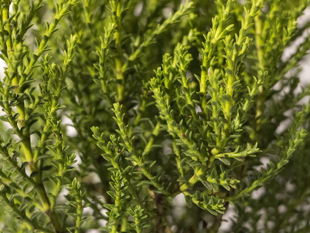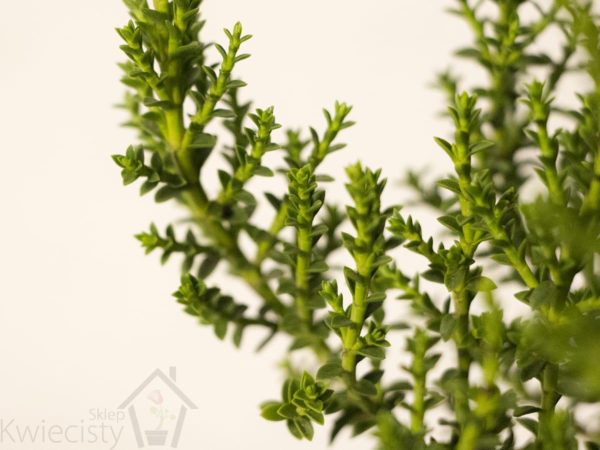 Zimozielona, zwarta, niska krzewinka gęstym, półkulistym pokroju, dorastająca do ok. 0,2 – 0,3 m wysokości. Listki intensywnie zielone, błyszczące. Roślina wrażliwa na niskie temperatury – wymaga okrywania na zimę. Polecana szczególnie na rabaty, do ogródków skalnych i wrzosowiskowych, a także jako roślina okrywowa. Małe, białe kwiaty mogą pojawić się na końcach gałęzi. Pora kwitnienia przypada na całe lato. Nie wymaga przycinania z wyjątkiem gałązek uszkodzonych. Wymaga za to regularnego podlewania, szczególnie w pierwszym roku po posadzeniu ale z podlewaniem nie należy przesadzać. Mała odporności na mrozy, wiecznie zielony krzew! Piękna i niepowtarzalna roślina dla której powinno się znaleźć miejsce w każdym ogrodzie, na rabaty, do ogródków skalnych i wrzosowiskowych, a także jako roślina okrywowa.