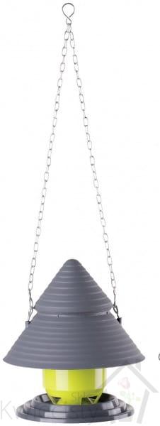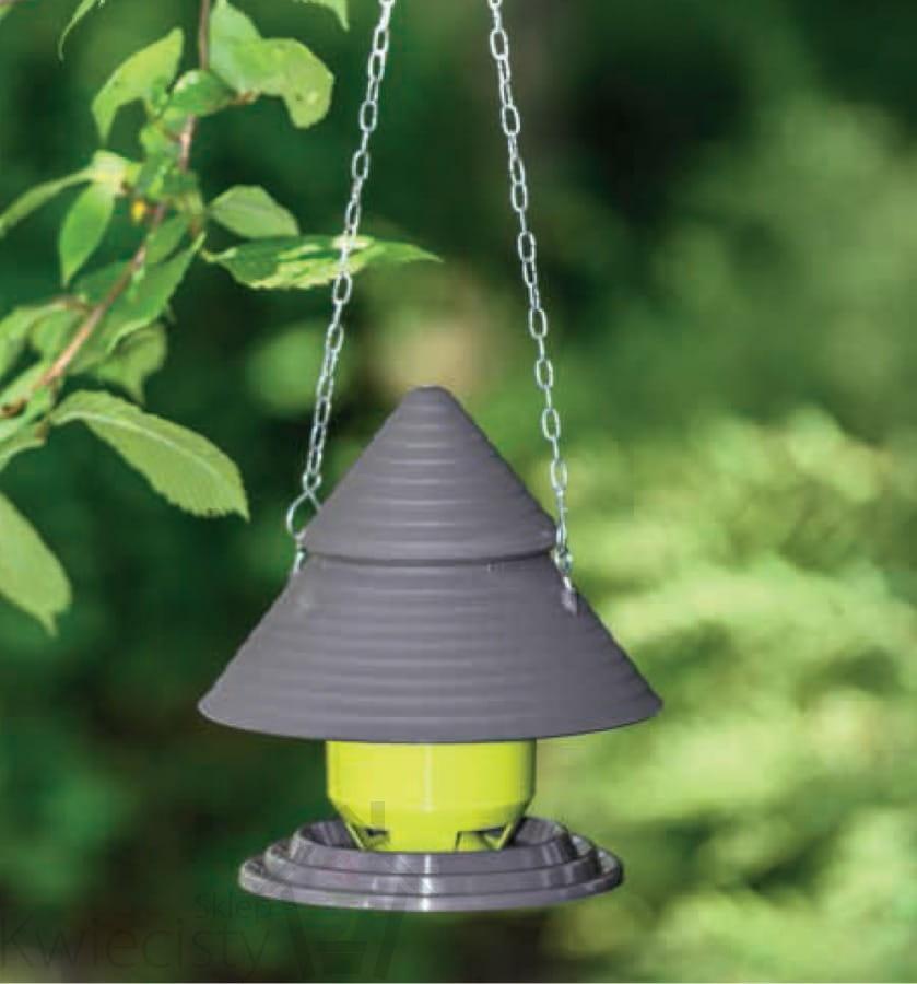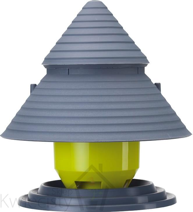 Okrągły daszek zabezpiecza pokarm przed wszelkimi opadami.