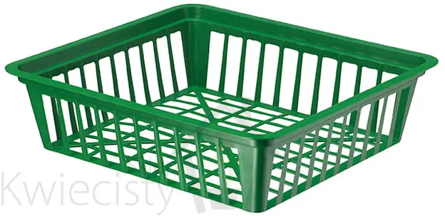 Ażurowy koszyk do sadzenia cebulek oraz przechowywania sadzonek, warzyw i owoców. Wymiary: 28x25x7 cm. Kolor zielony.