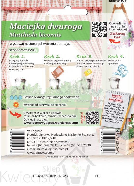Nasiona kwiatów z serii "Domowy Ogród". Maciejka dwuroga. Opakowanie zawiera 2.00g nasion.