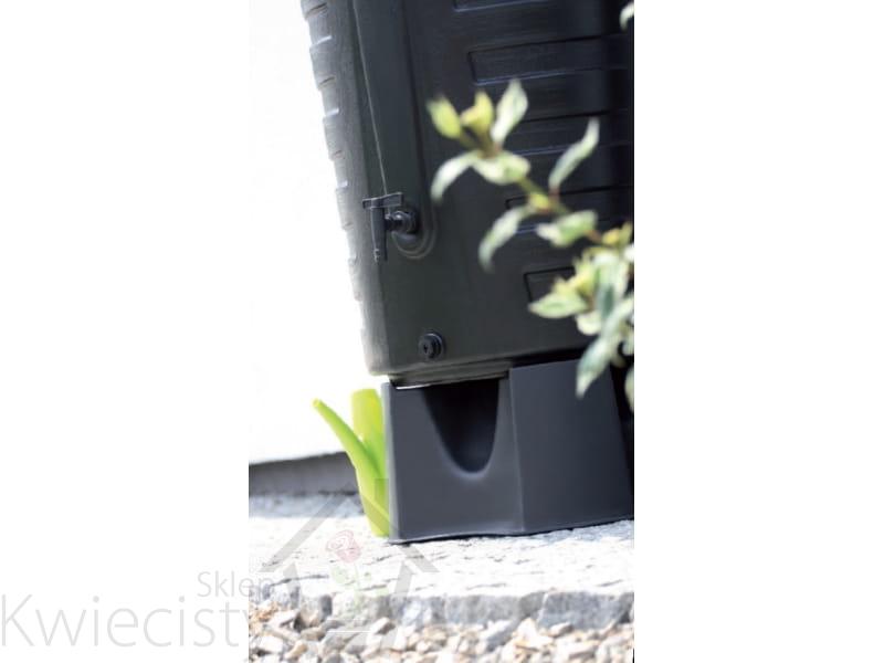 Podstawa ułatwia opróżnienie pojemnika z deszczówki do wiadra lub konewki. Jest odporna na uszkodzenia mechaniczne oraz promienie UV.