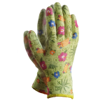 Rękawice powlekane bezbarwnym poliuretanem na artystycznie zdobionej podszewce.