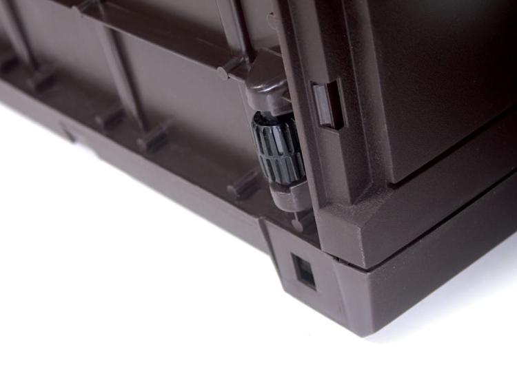 Skrzynia w całości jest wykonana z trwałego tworzywa sztucznego, imitującego fakturę plecionego bambusa, a jej montaż nie wymaga użycia narzędzi. Konstrukcja pokrywy umożliwia zamknięcie skrzyni na kłódkę. Skrzynia jest wodoodporna, konstrukcja zapobiega przedostawaniu się wody do środka, jej powierzchnia jest łatwa do utrzymania w czystości.