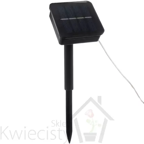 - Specyfikacja - materiał: ABS, pozostałe: PP; materiał panelu: krzem polikrystaliczny; barwa światła: biała; efekt: flaming; źródło światła: diody LED; ilość LED: 3x2; wbudowany akumulator: 600 mAh; czas ładowania: 6-8; czas pracy: 8h; długość szpikulca do wbicia do figur: 8,5 cm; długość szpikulca do wbicia do panelu: 9 cm; długość kabla pomiędzy figurami: 1m; długość kabla pomiędzy panelem a figurami: 1 m; wymiar panelu solarnego: 6,5 x 6,5 cm; wysokość całkowita: 52 cm; waga: 0,316 kg; waga w opakowaniu: 0,404 kg.