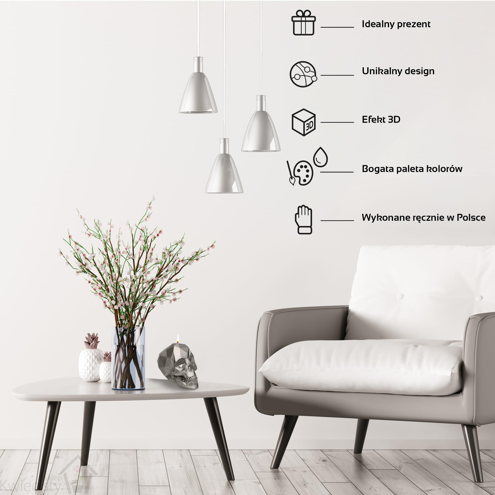 Wybierz świecę ozdobną Skull Low-Poly Candellana w kolorze Brass, aby dodać swojemu wnętrzu elegancji i wyrafinowanego stylu. Ta świeca jest idealna do stworzenia przytulnej atmosfery podczas romantycznych kolacji lub jako stylowy dodatek do Twojej domowej biblioteki. Perfekcyjna na prezent dla miłośników luksusu i nietuzinkowych dekoracji.