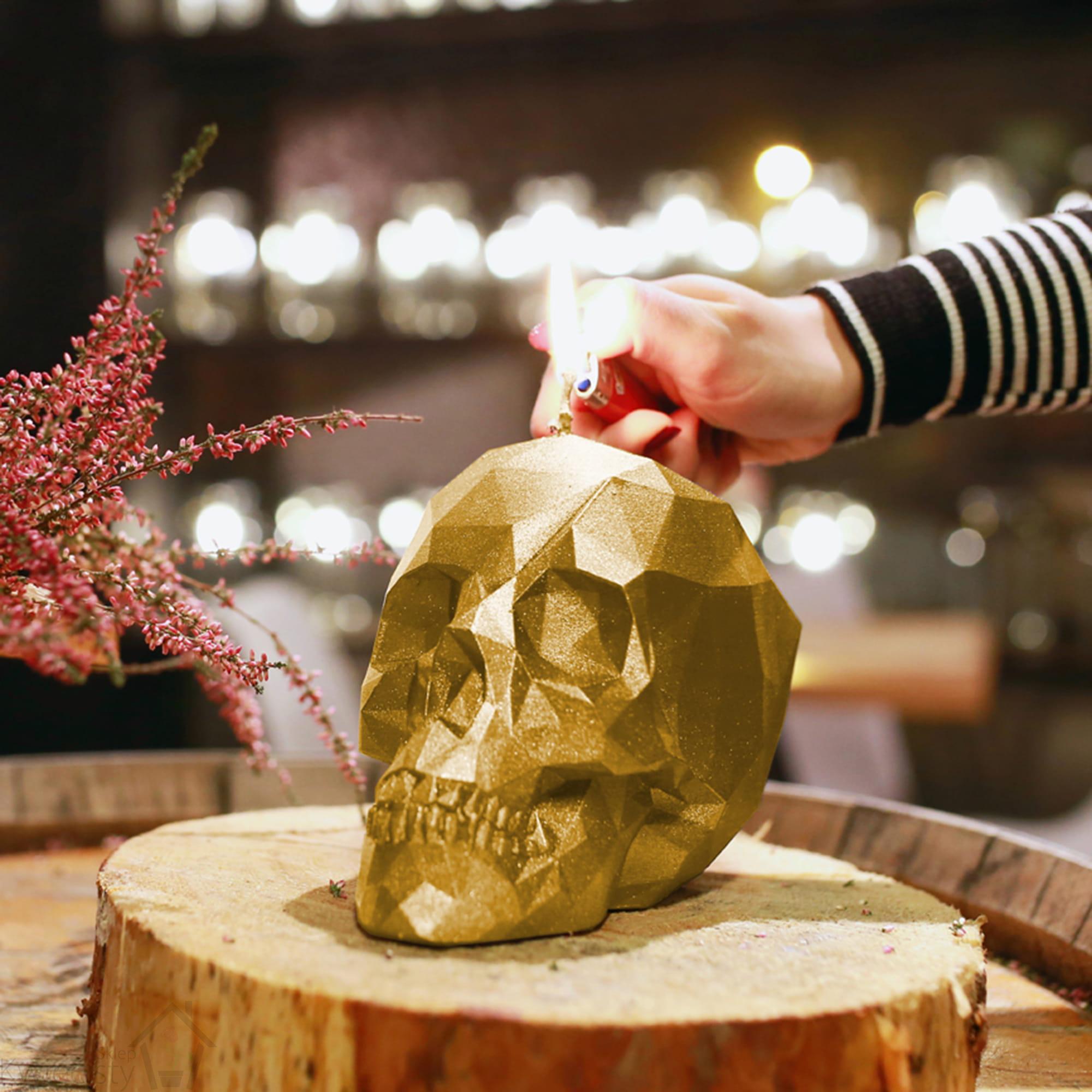 Świeca ozdobna Skull Low-Poly Candellana, kolor Brass, rozmiar Big
