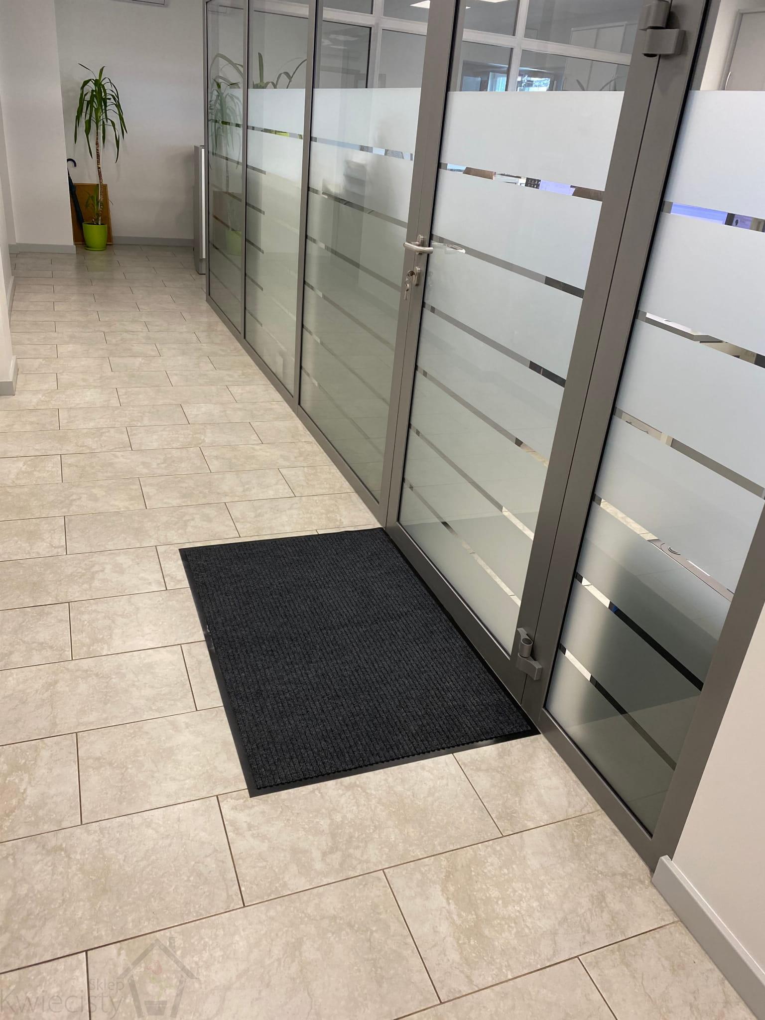 - Mata jest prążkowana, dzięki czemu lepiej zatrzymuje brud i inne zanieczyszczenia z butów.