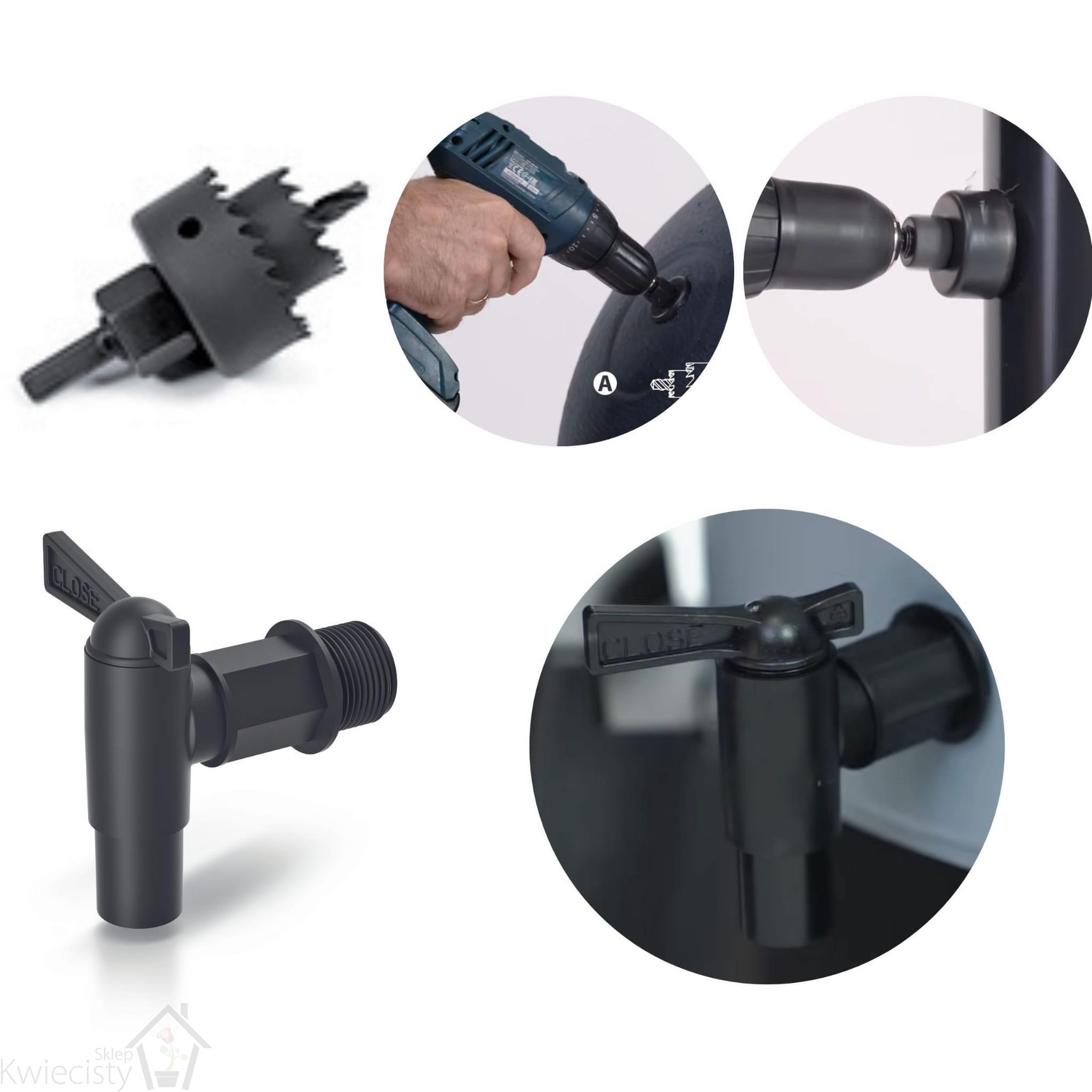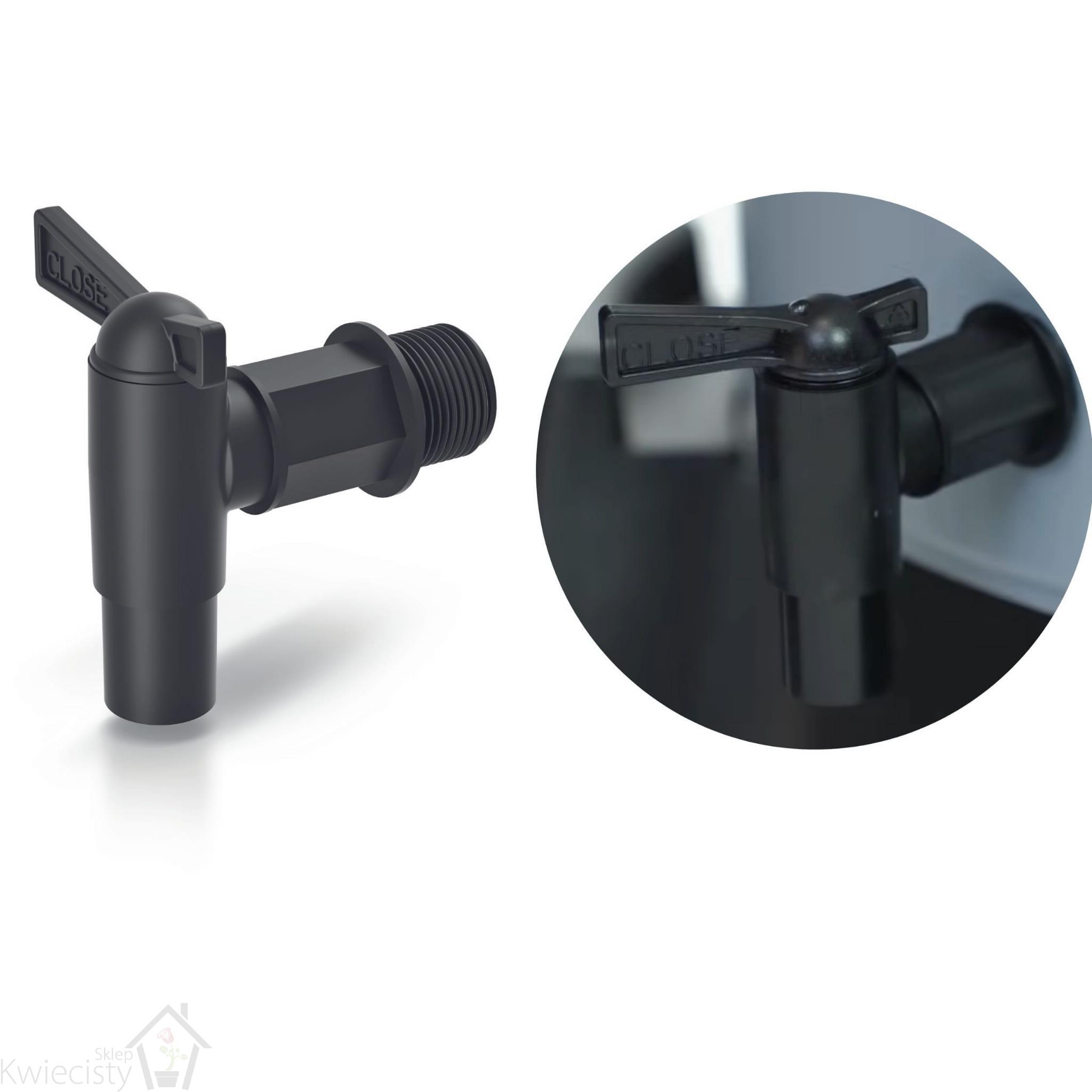 - Kranik: Praktyczny kranik umożliwiający łatwe pobieranie zgromadzonej wody, np. do podlewania roślin czy napełniania konewki.