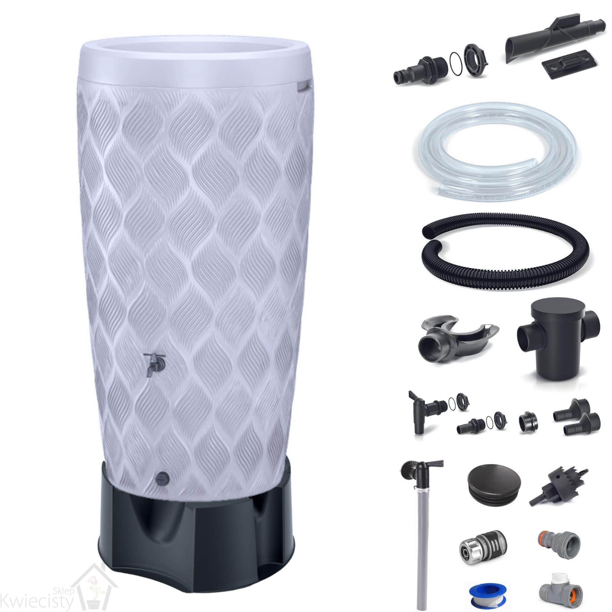 Zbiornik na deszczówkę Flow 240l przyłącza i podstawa | Platyna