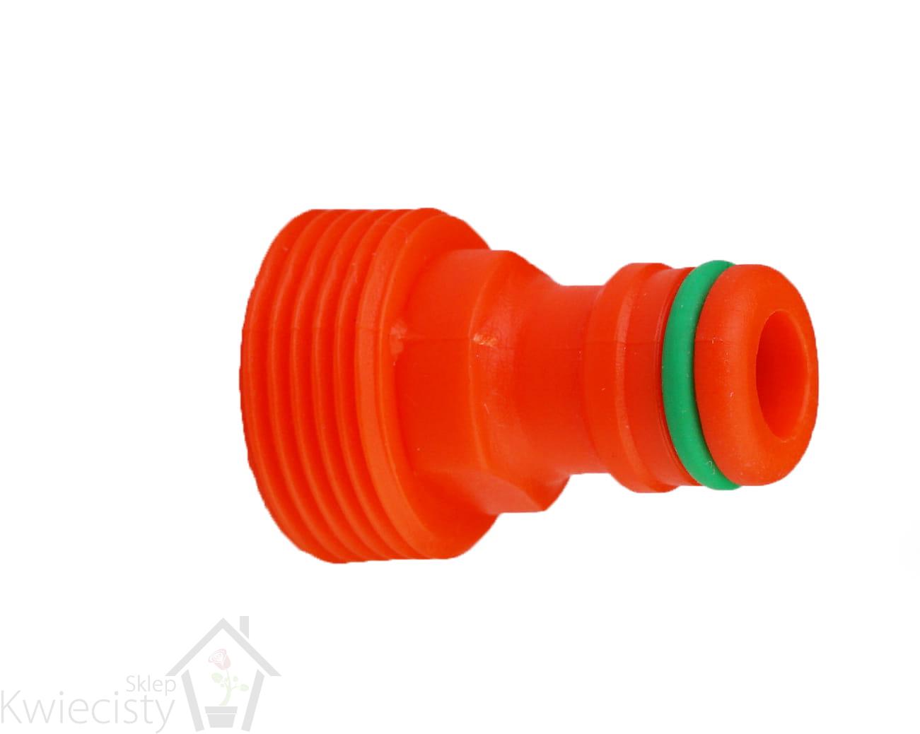 Wkręcone do urządzania (np. zraszacza) lub innego elementu z gwintem wewnętrznym umożliwia połączenie go z wężem zakończonym szybkozłączką.