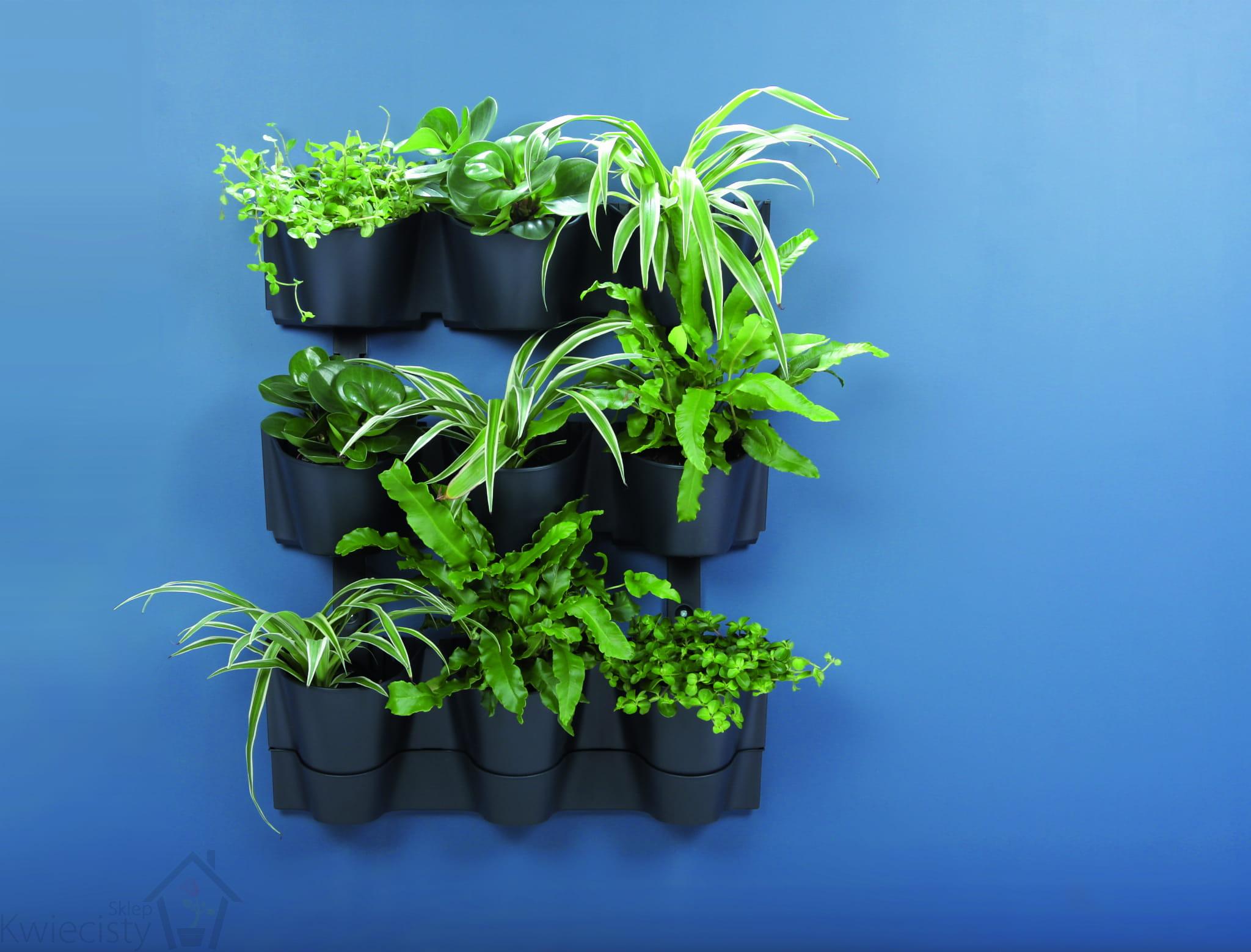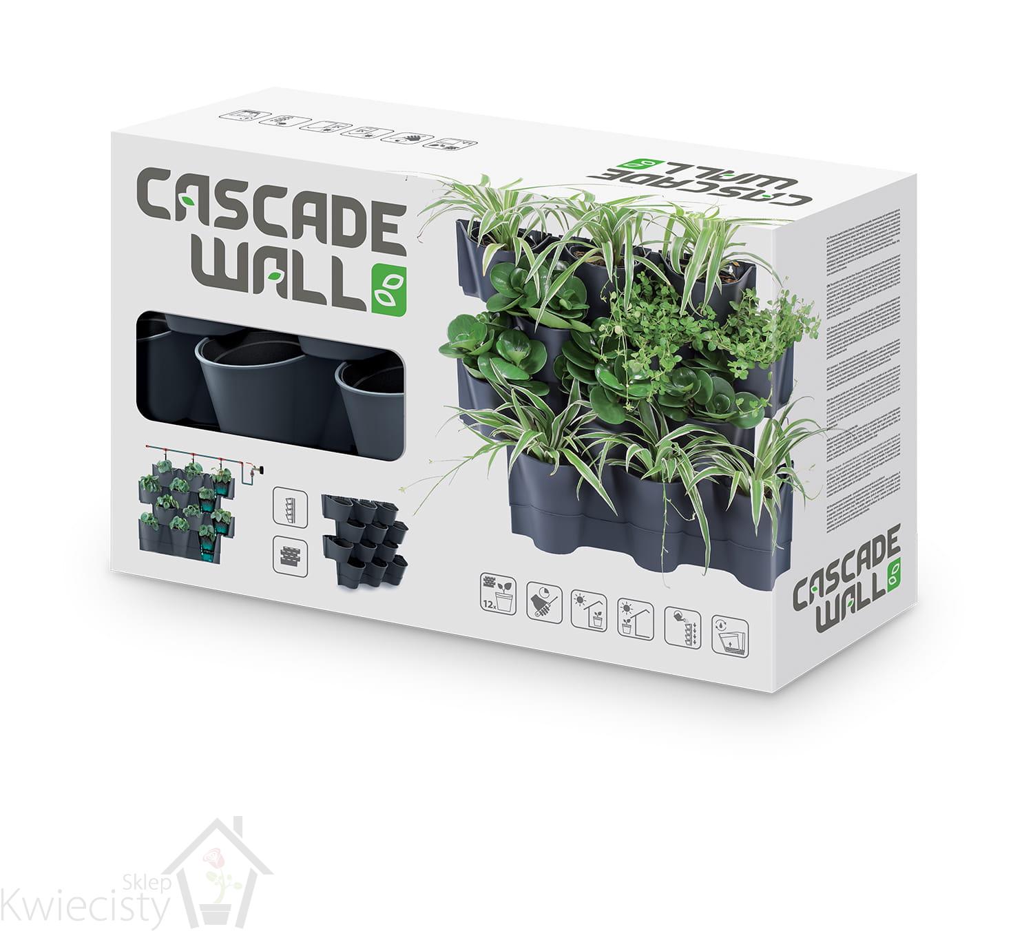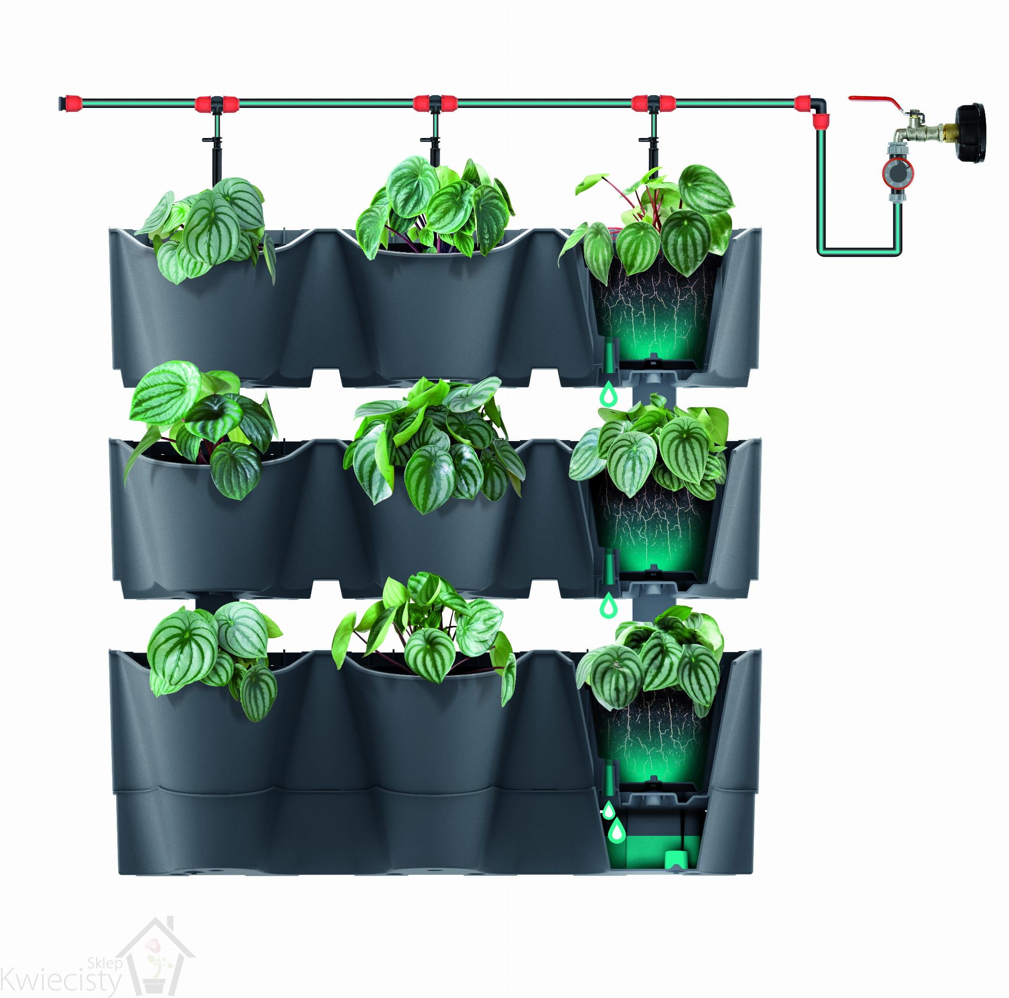 Cascade Wall system ogrodów wertykalnych wiszący z tworzywa sztucznego. Możliwość dowolnej konfiguracji pozwalającej tworzyć przepływowy system nawadniania.