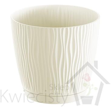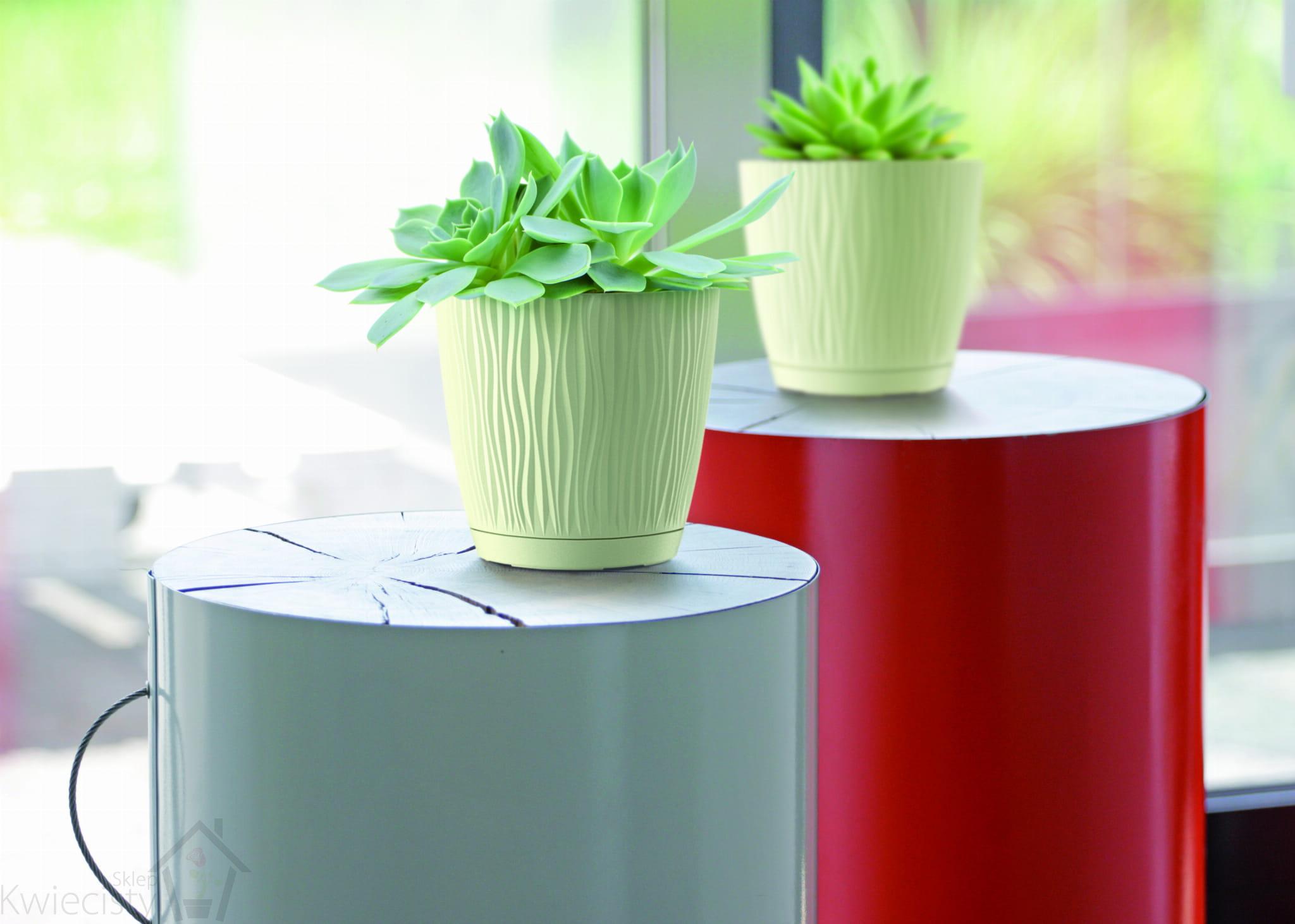 Doniczka z kolekcji Sandy o powierzchni uszlachetnionej łagodnie falującymi pionowymi żłobieniami, uformowanymi na wzór pustynnego piachu.