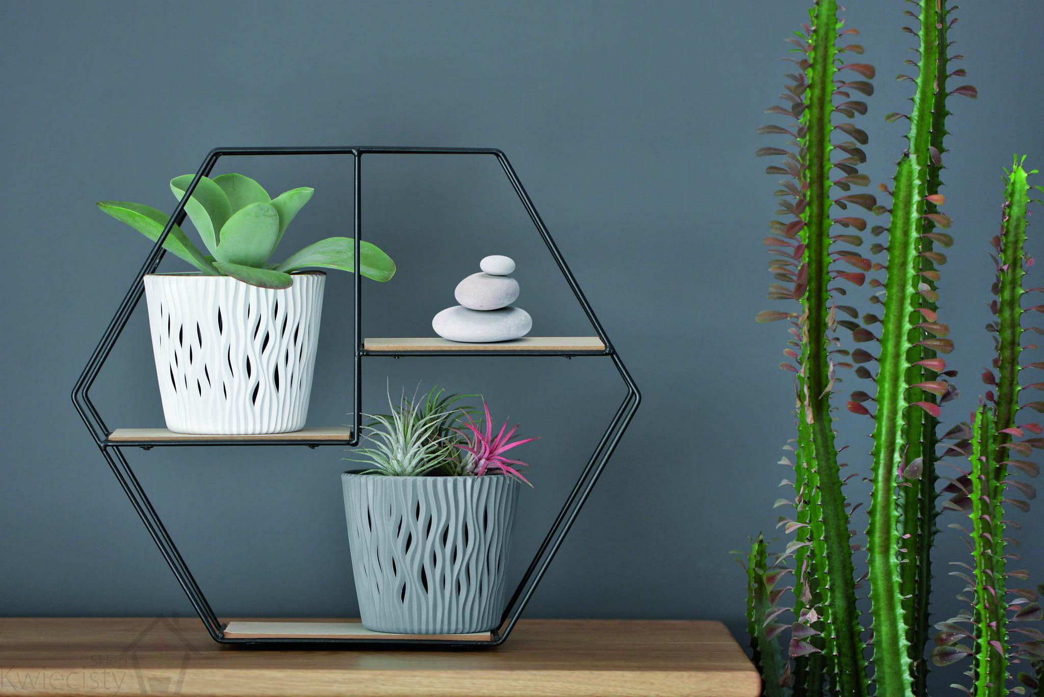 Doniczka okrągła, fale 3D, Sandy Round DSR220 z wkładem