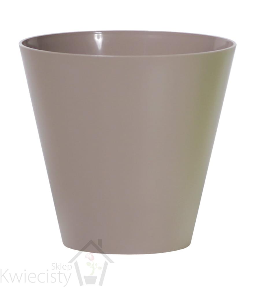 Okrągła, klasyczna doniczka o gładkiej, matowej powierzchni. Wykonana z wysokiej jakości tworzywa sztucznego. Wymiary: 25x23,3 cm.