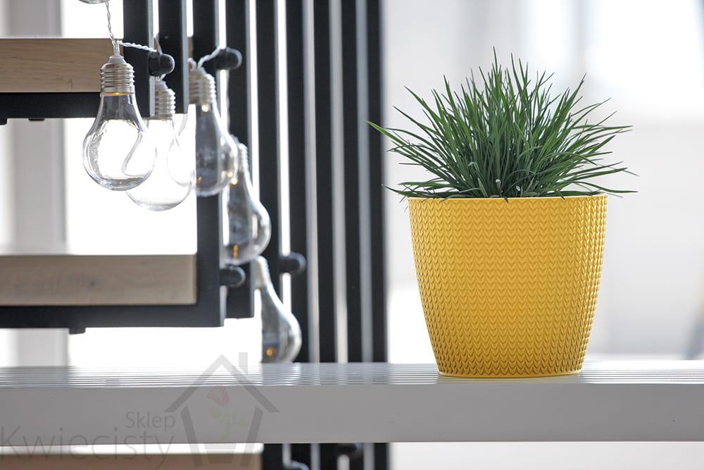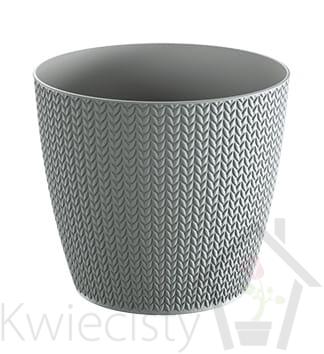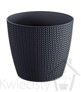 Okrągła doniczka o teksturowanej powierzchni. Wysokiej jakości tworzywo sztuczne. Wymiary: 22x19,3 cm. Pojemność: 5,4l. Wybór kolorów.
