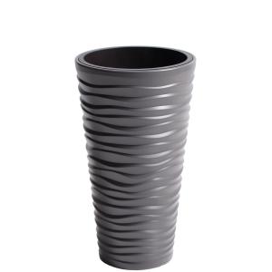 Wysokie, mrozoodporne doniczki o nierównomiernej, falistej strukturze. Wykonane z tworzywa sztucznego. Wymiary: 30x52 cm. Pojemność: 22 l. Wybór kolorów.